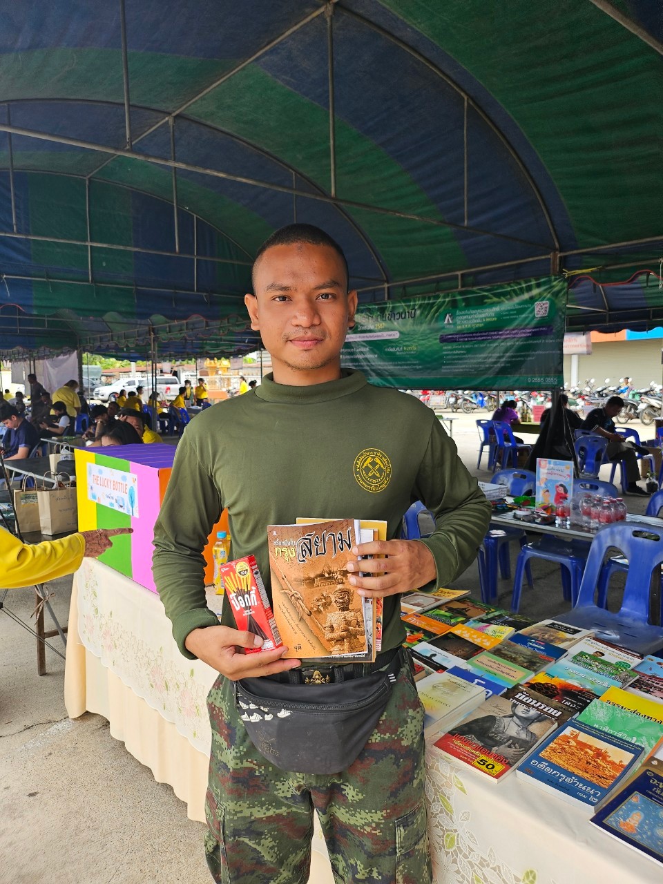 ได้จัดหนังสือดีจากโครงการ Books Share แบ่งปันกันอ่าน มอบให้ผู้เข้าร่วมโครงการจำนวน 200 เล่ม The Lucky Bottle ขวดนำโชค กิจกรรมพับเป็น เล่นได้ ประดิษฐ์ร่มกระดาษ และบอร์ดเกม ณ สมาคมบำเพ็ญกุศลบ้านตลาดเขต ต.รางหวาย อ.พนมทวน จ.กาญจนบุรี