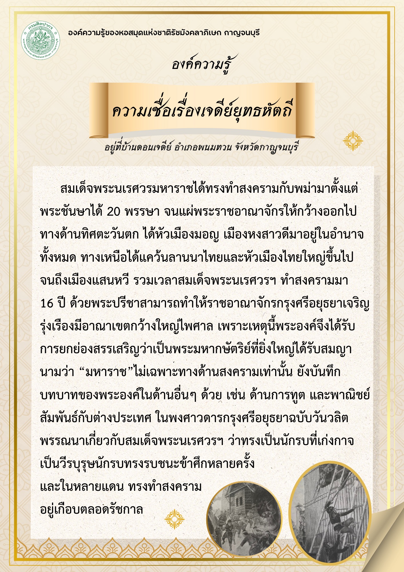 องค์ความรู้ เรื่อง "ความเชื่อเรื่องเจดีย์ยุทธหัตถี"