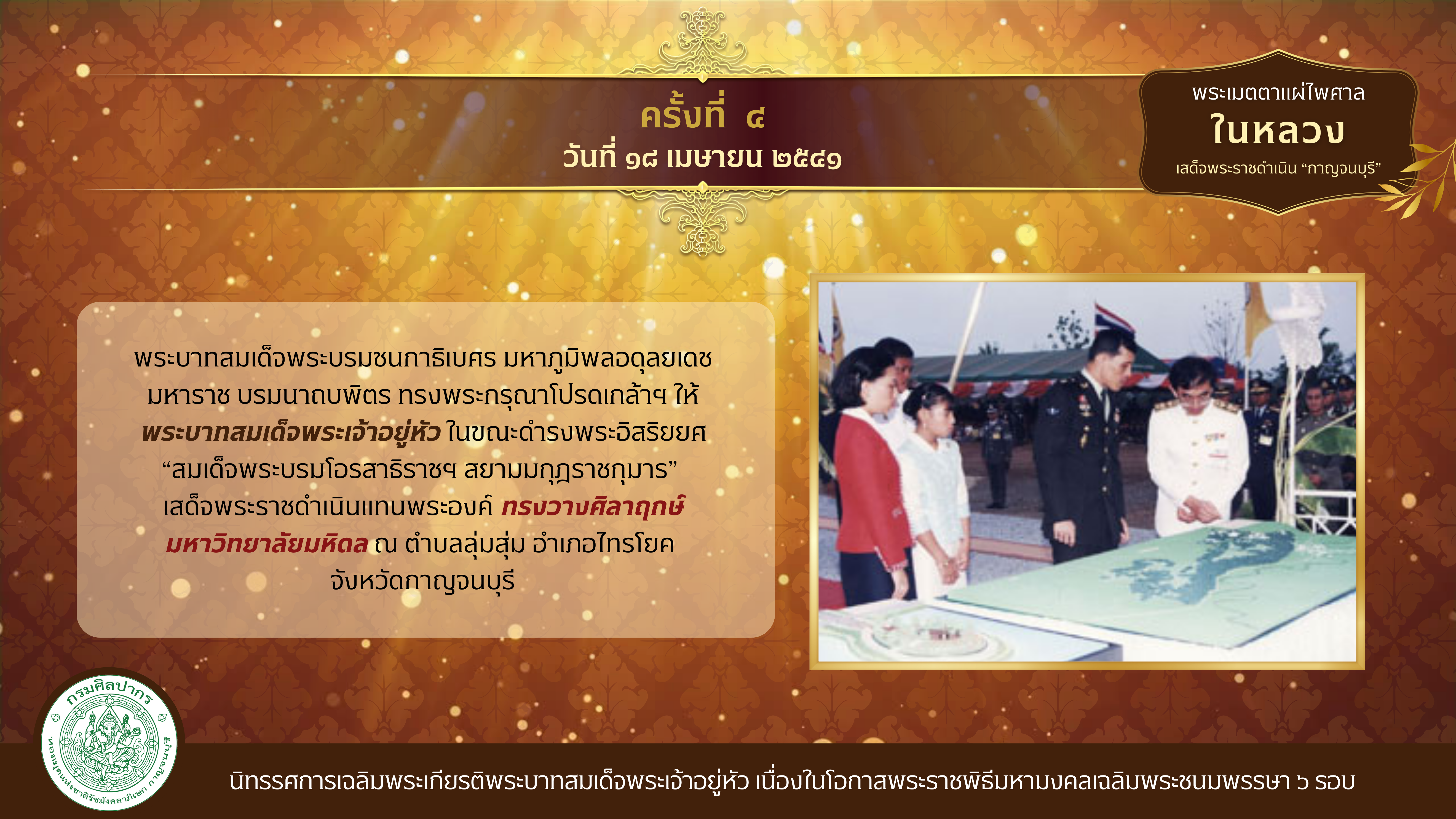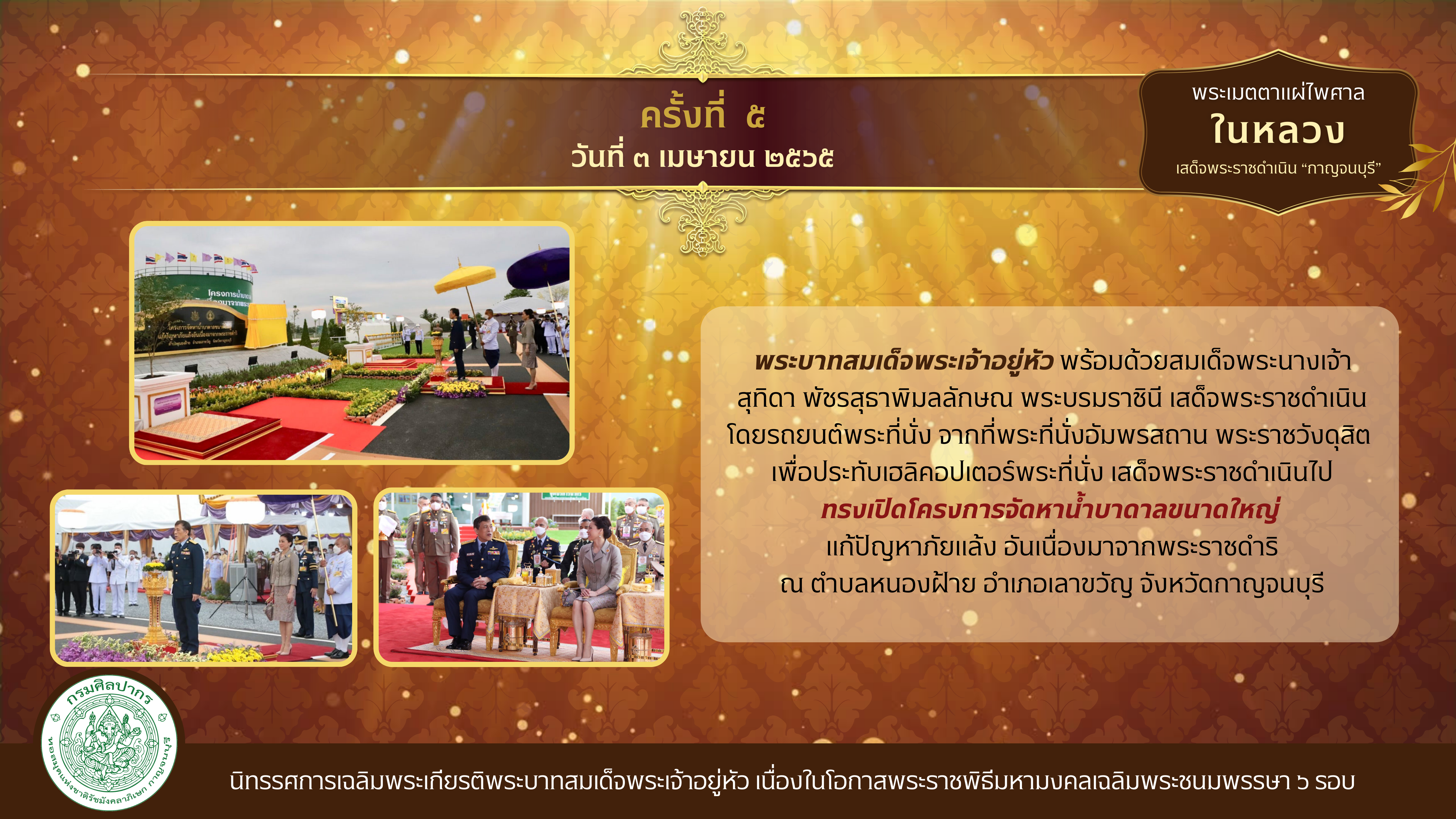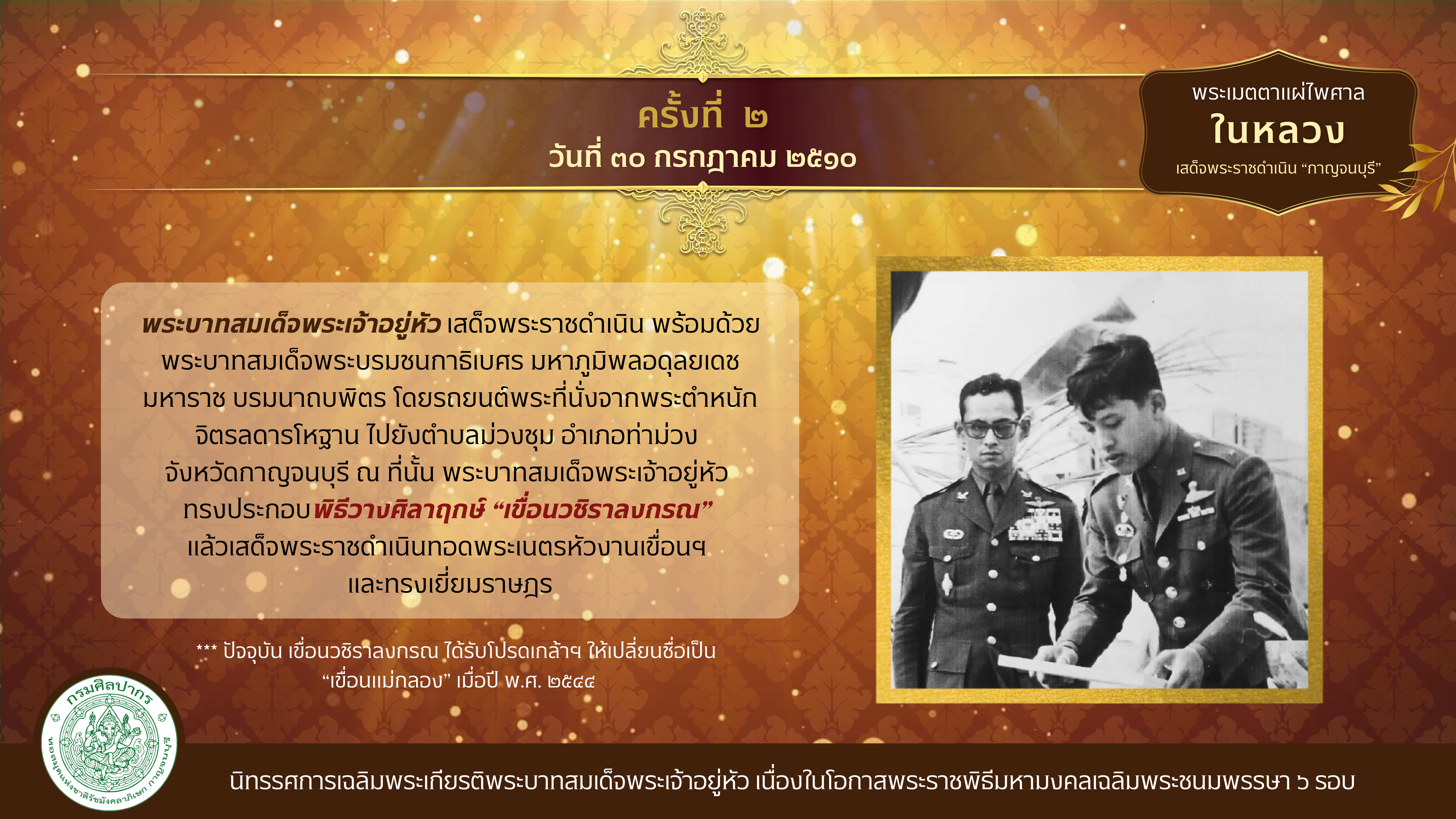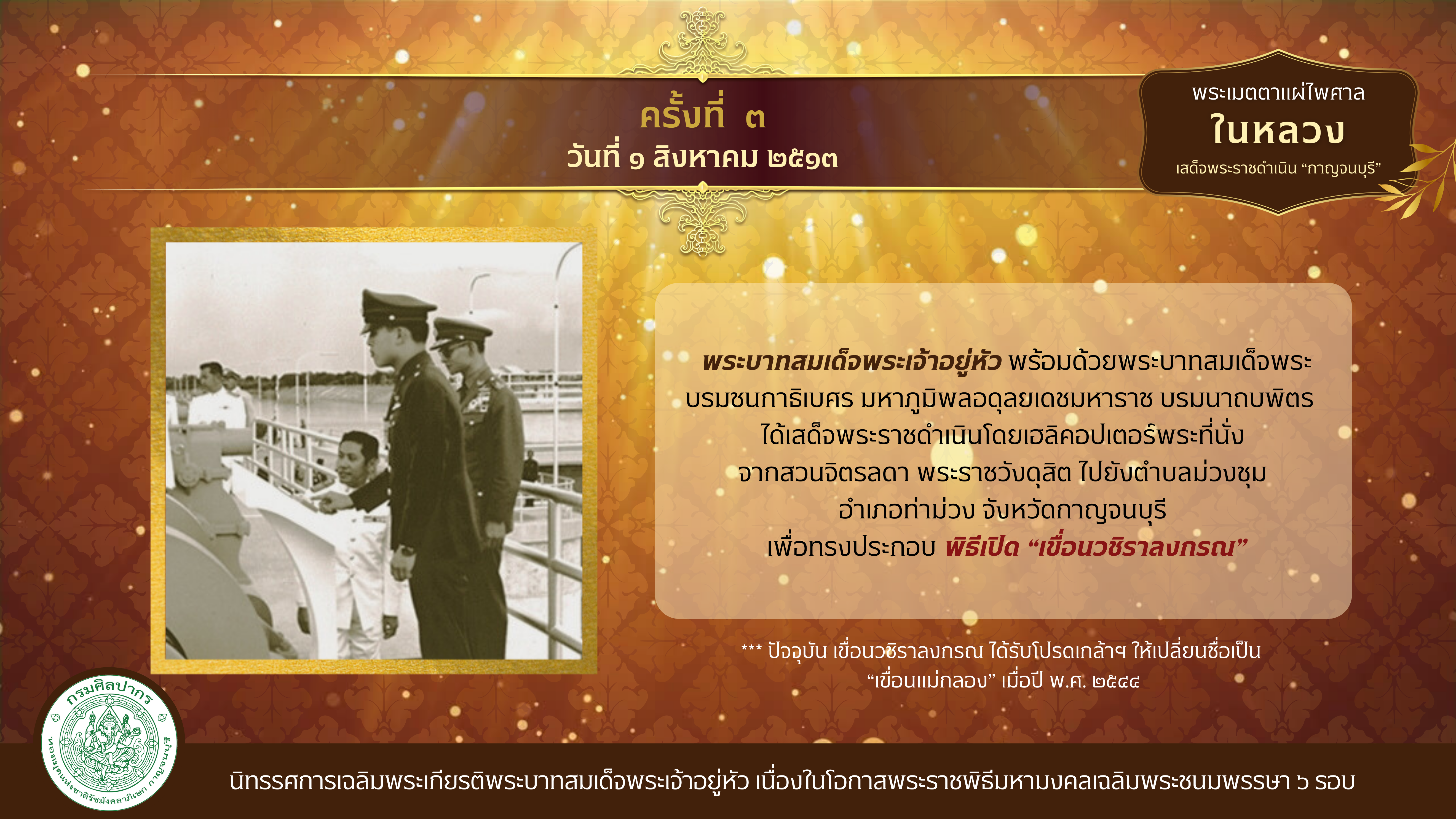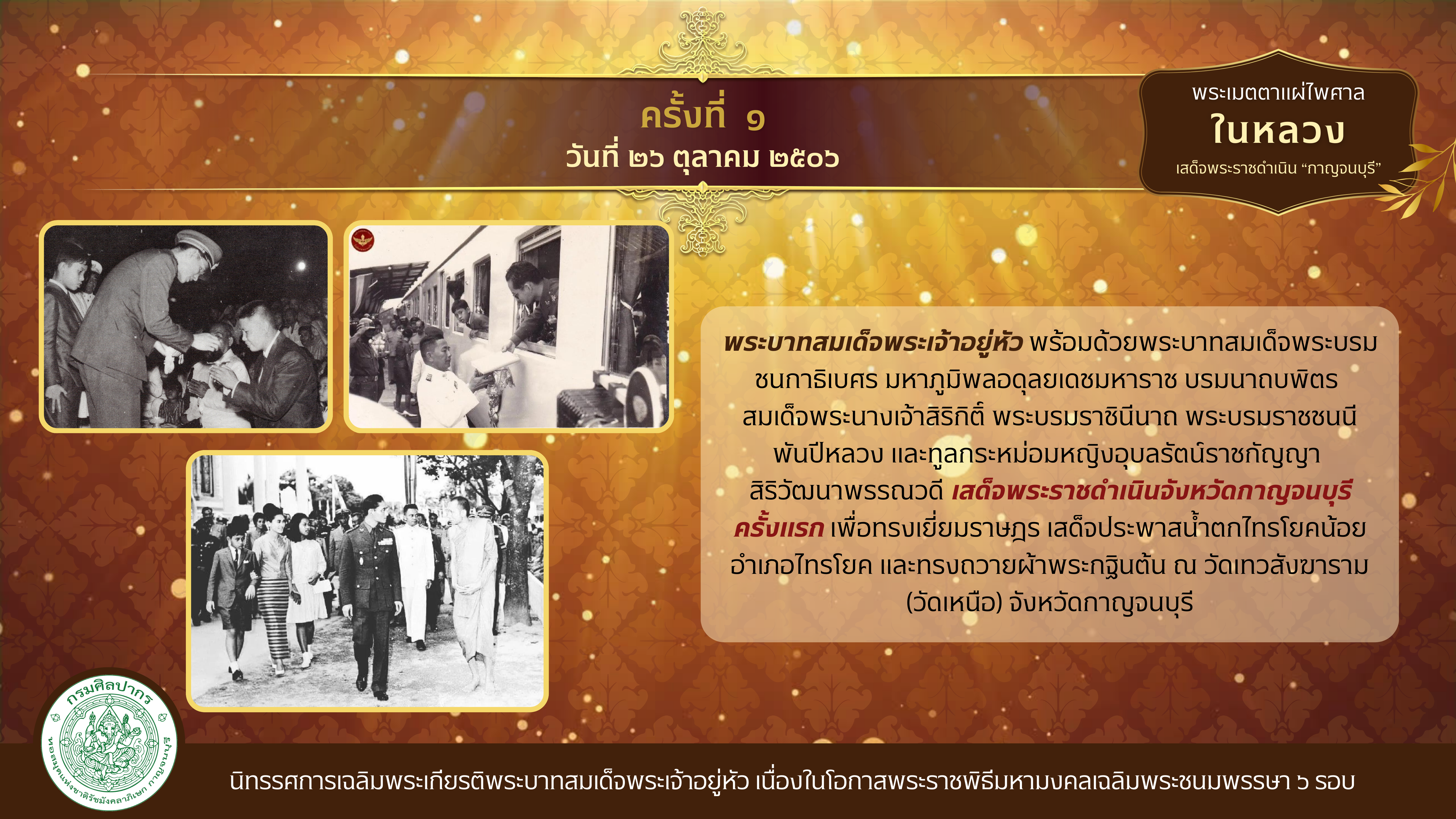 นิทรรศการ “พระเมตตาแผ่ไพศาล ในหลวง เสด็จพระราชดำเนิน กาญจนบุรี” เพื่อเฉลิมพระเกียรติพระบาทสมเด็จพระเจ้าอยู่หัว เนื่องในโอกาสพระราชพิธีมหามงคลเฉลิมพระชนมพรรษา ๖ รอบ