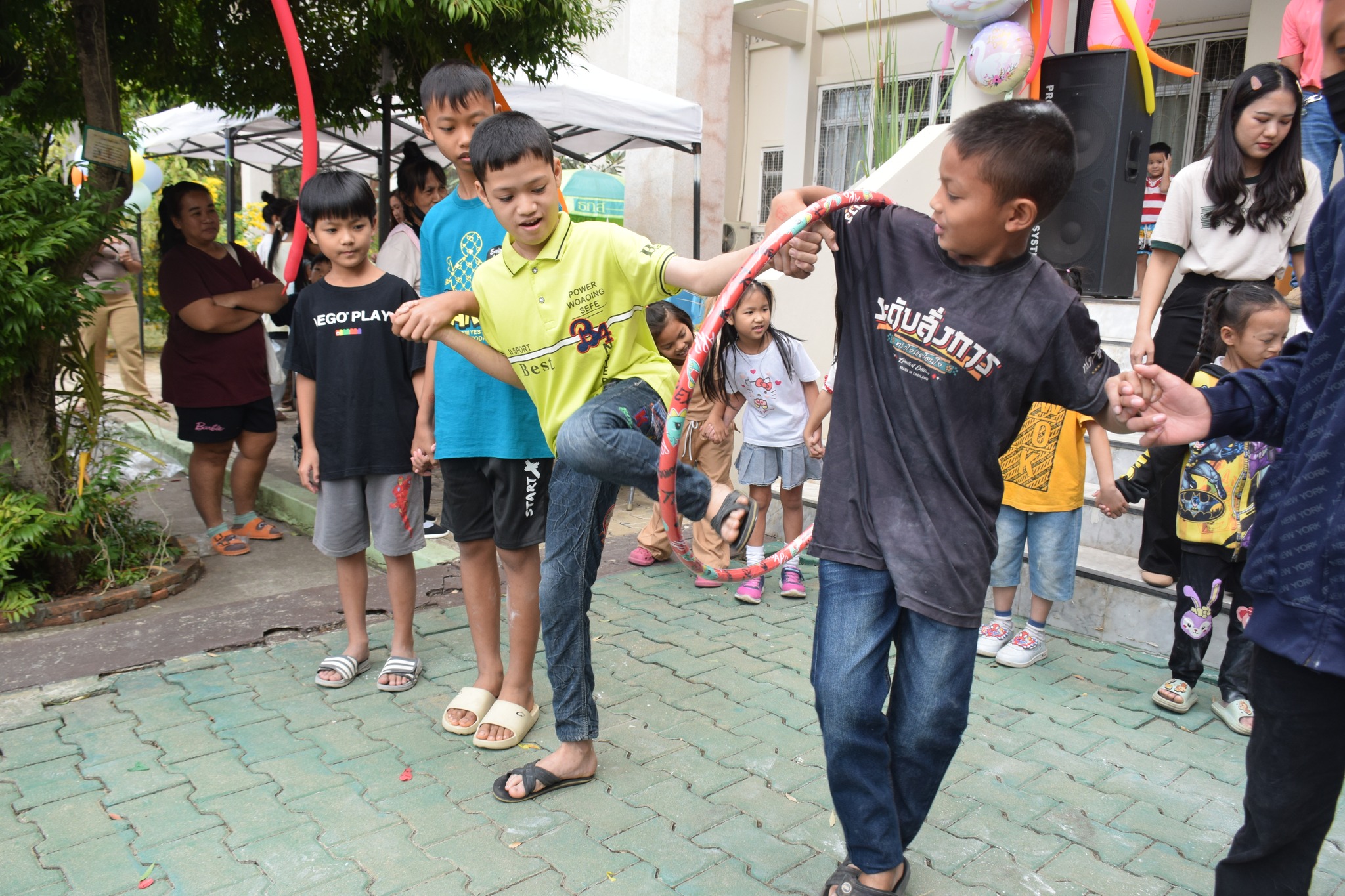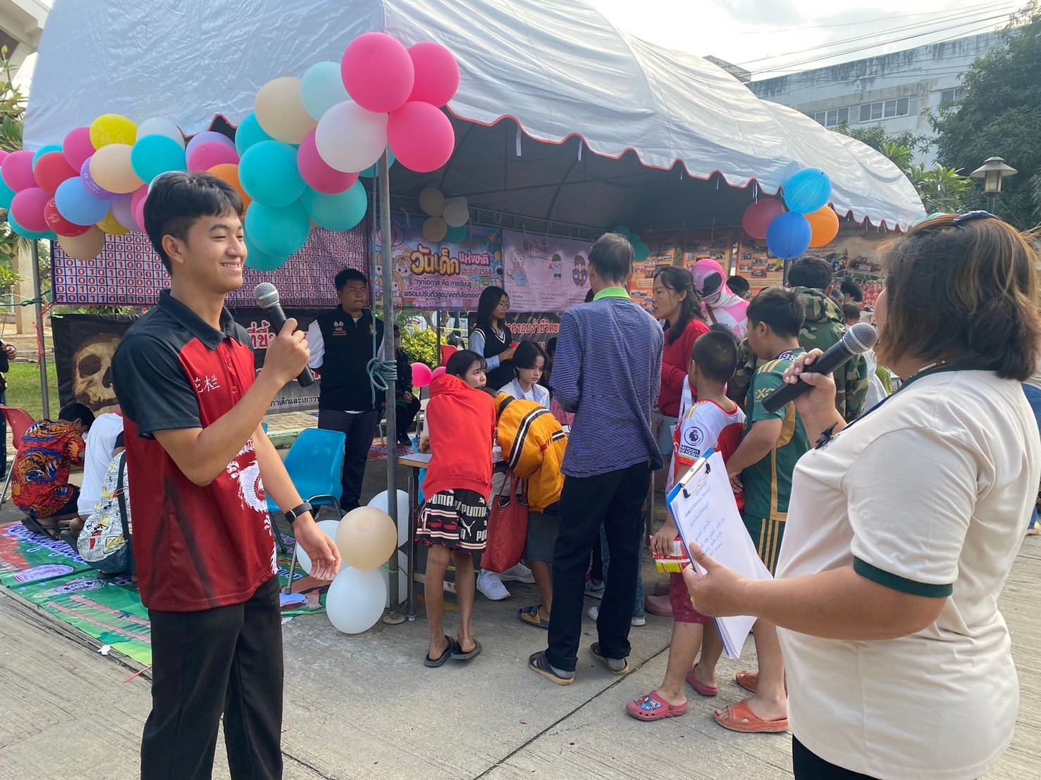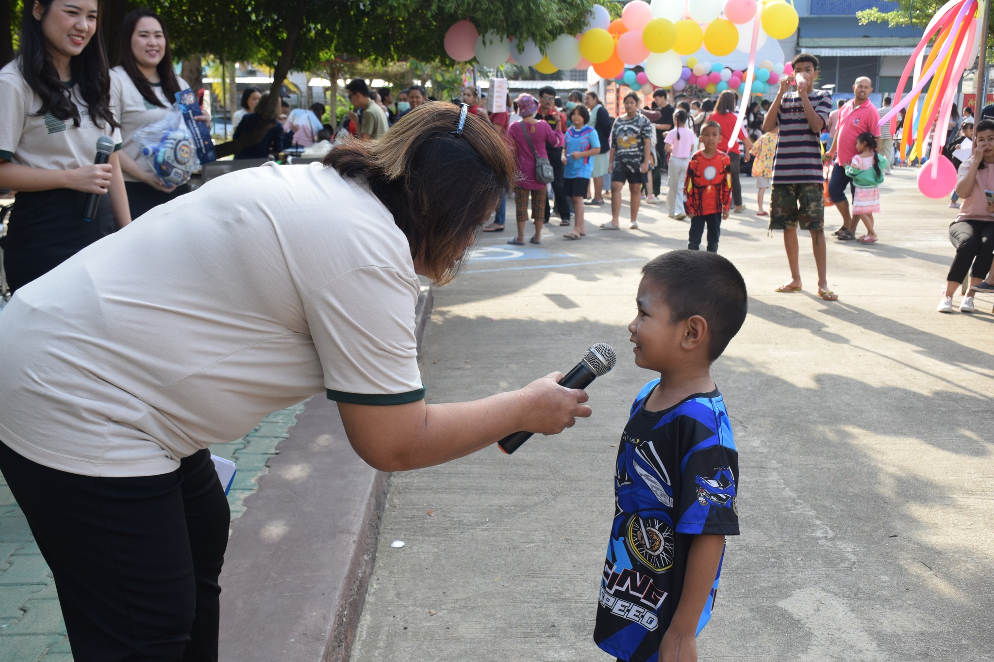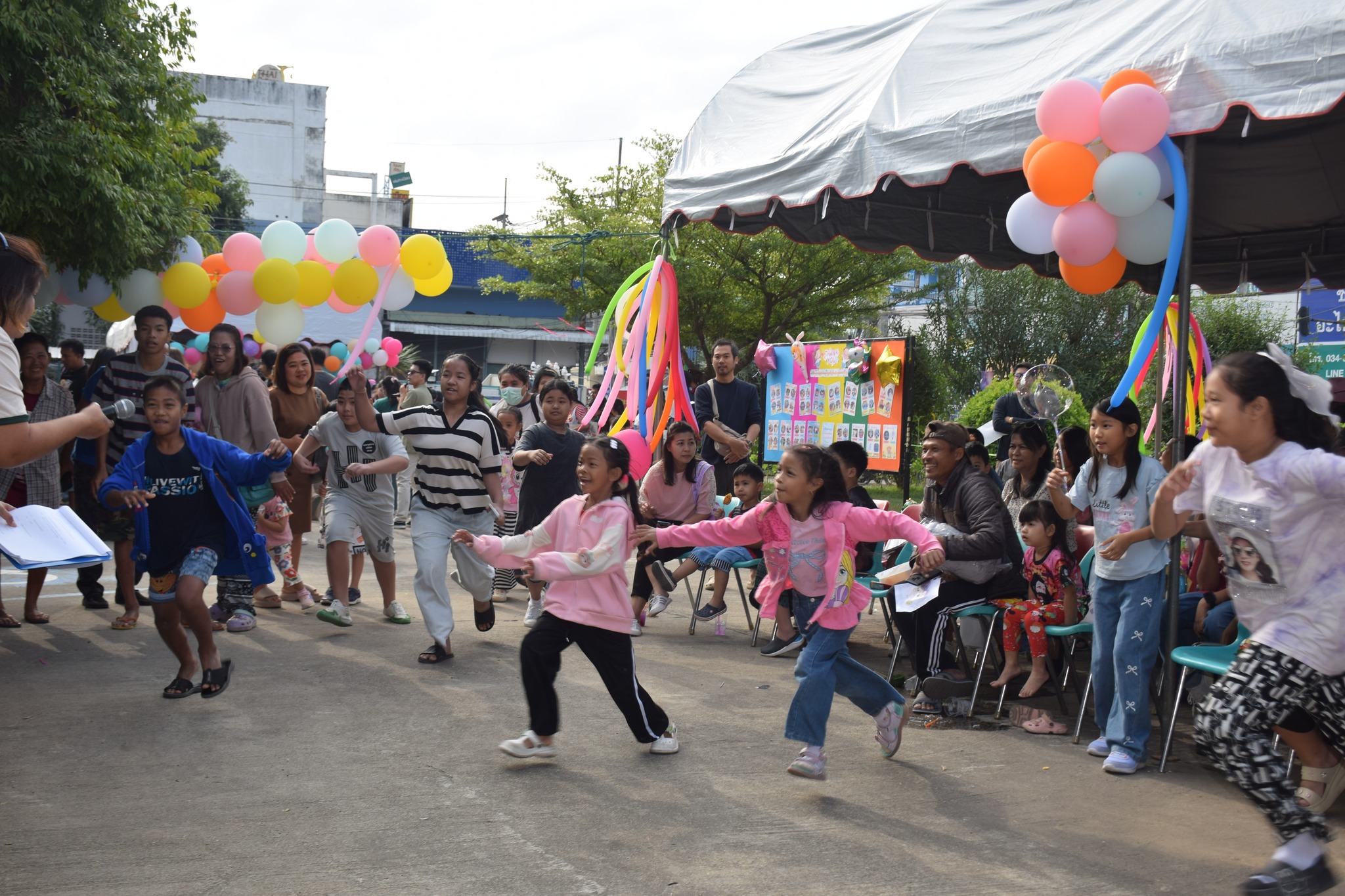 -เล่นเกมมหาสนุก อาทิ เก้าอี้ดนตรี ห่วงสามัคคี ตอบคำถามชิงรางวัล ลูกโป่งมหาสนุก แป้งปังปัง และเติมให้เต็ม