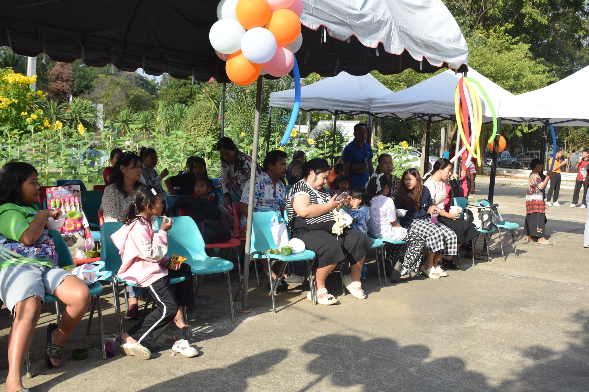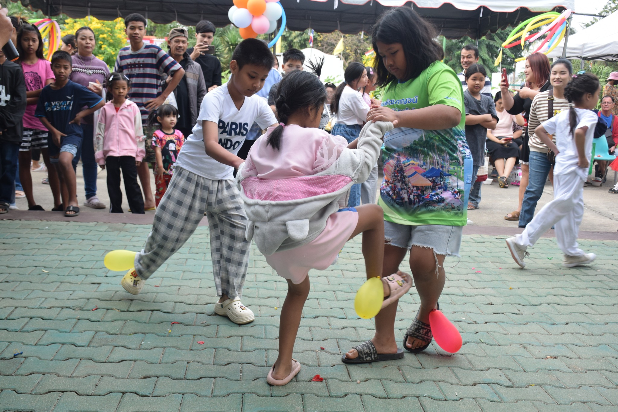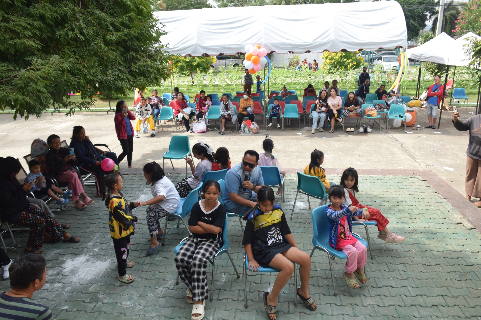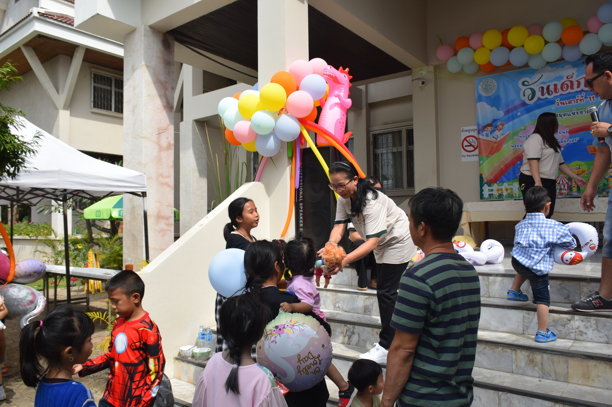 -เล่นเกมมหาสนุก อาทิ เก้าอี้ดนตรี ห่วงสามัคคี ตอบคำถามชิงรางวัล ลูกโป่งมหาสนุก แป้งปังปัง และเติมให้เต็ม