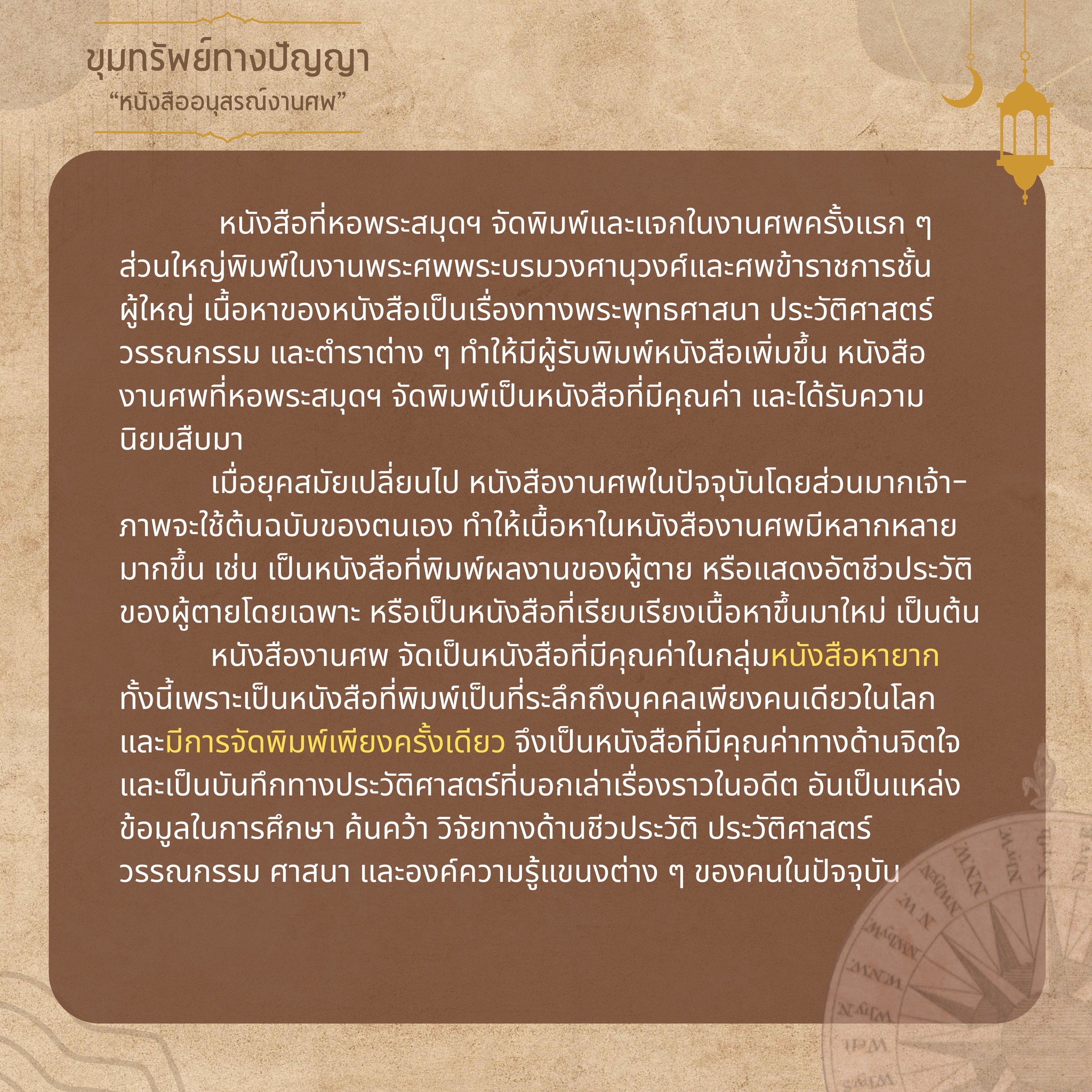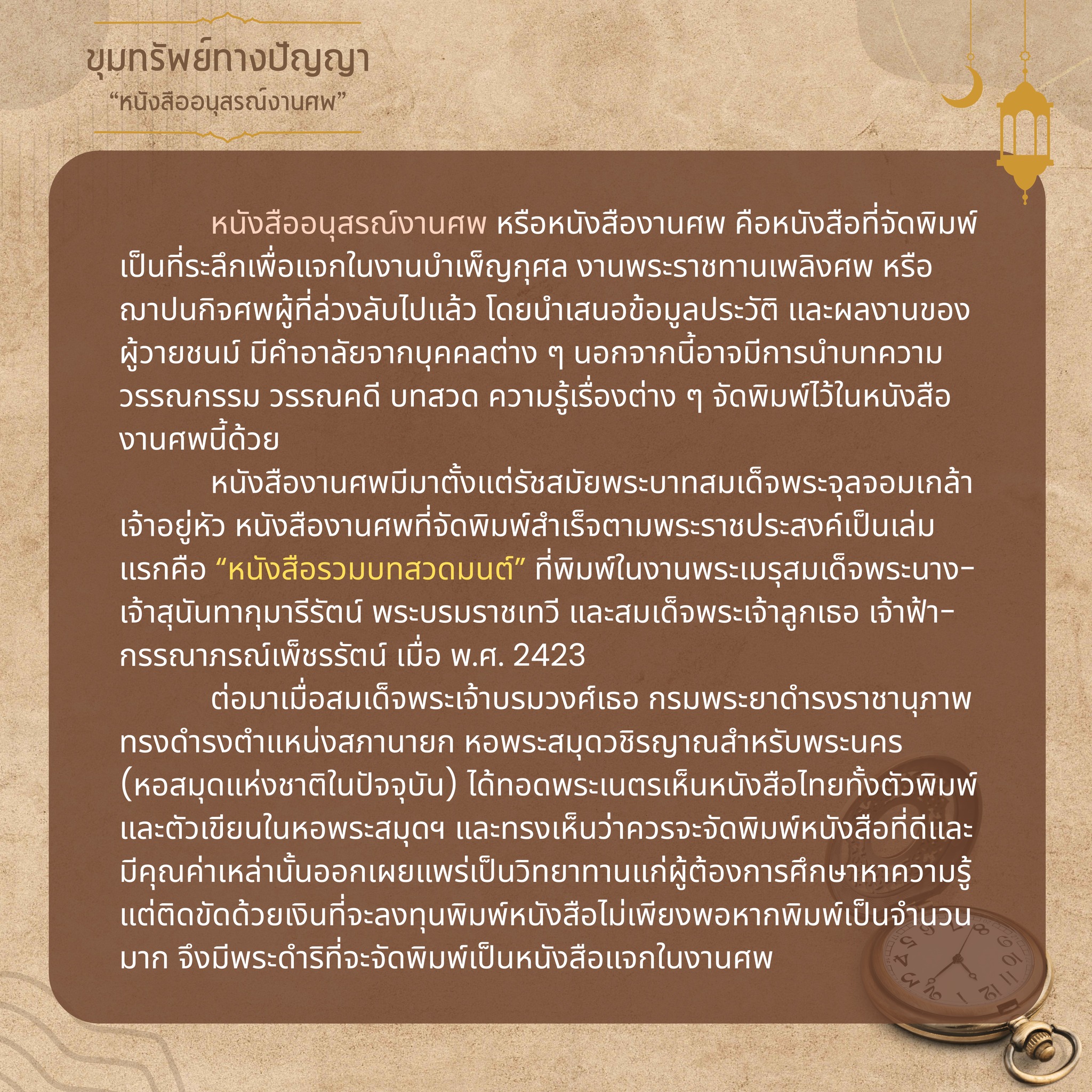 องค์ความรู้ เรื่อง ขุมทรัพย์ทางปัญญา “หนังสืออนุสรณ์งานศพ”