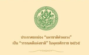 คณะกรรมการวรรณคดีแห่งชาติ ยกย่องวรรณคดีเรื่อง "มหาชาติคำหลวง" เป็นวรรณคดีแห่งชาติ ในพุทธศักราช ๒๕๖๕