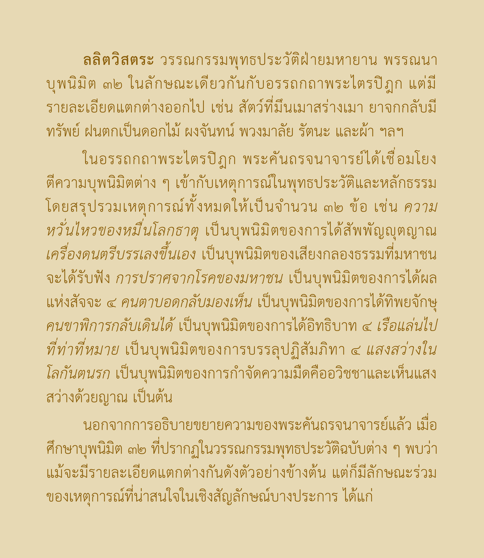 องค์ความรู้ เรื่อง บุพนิมิต ๓๒ ในวรรณกรรมพุทธประวัติ