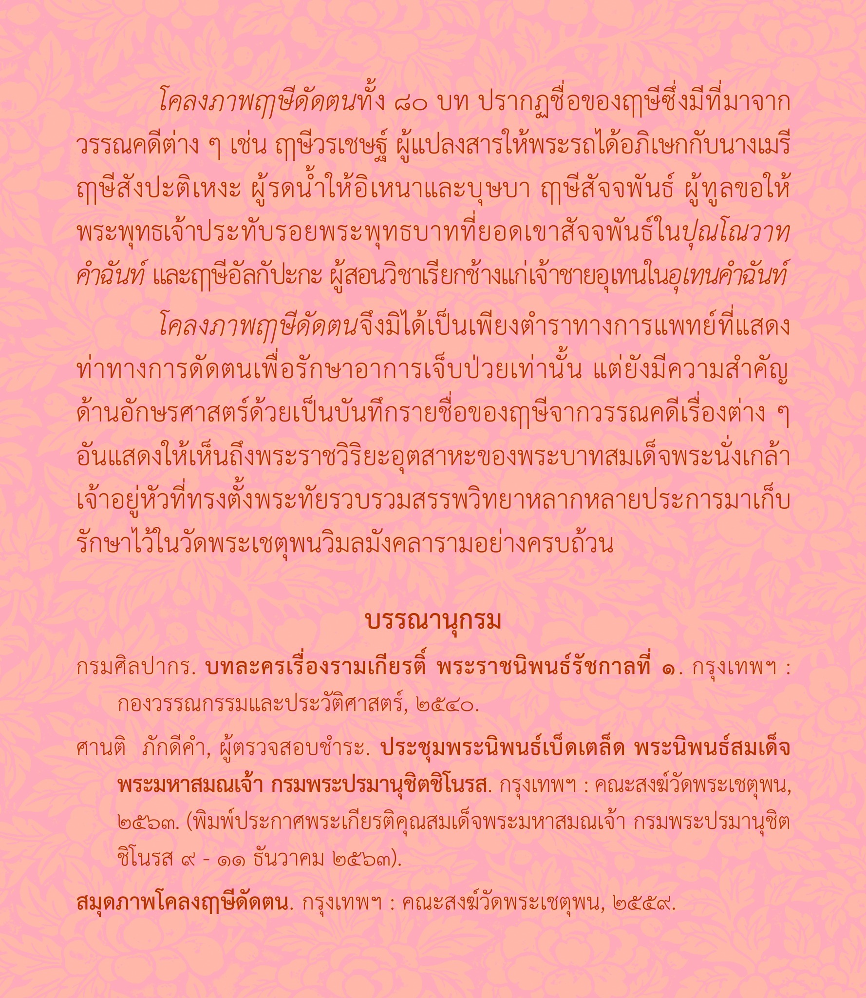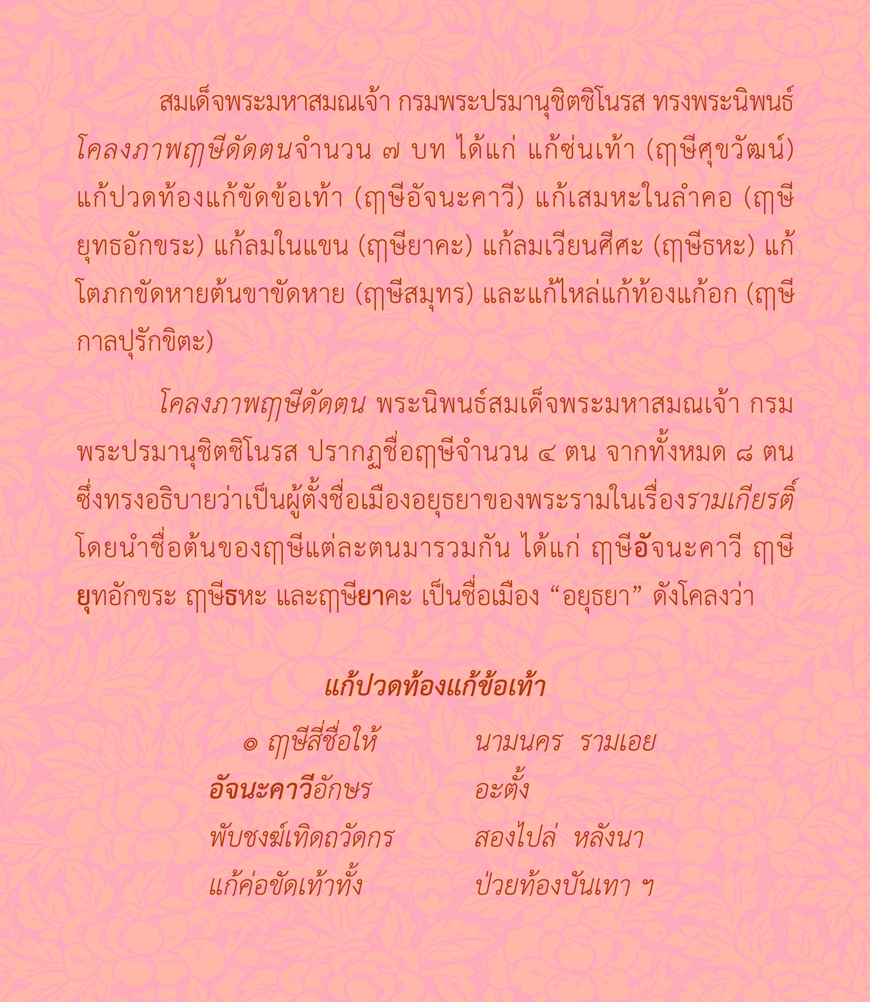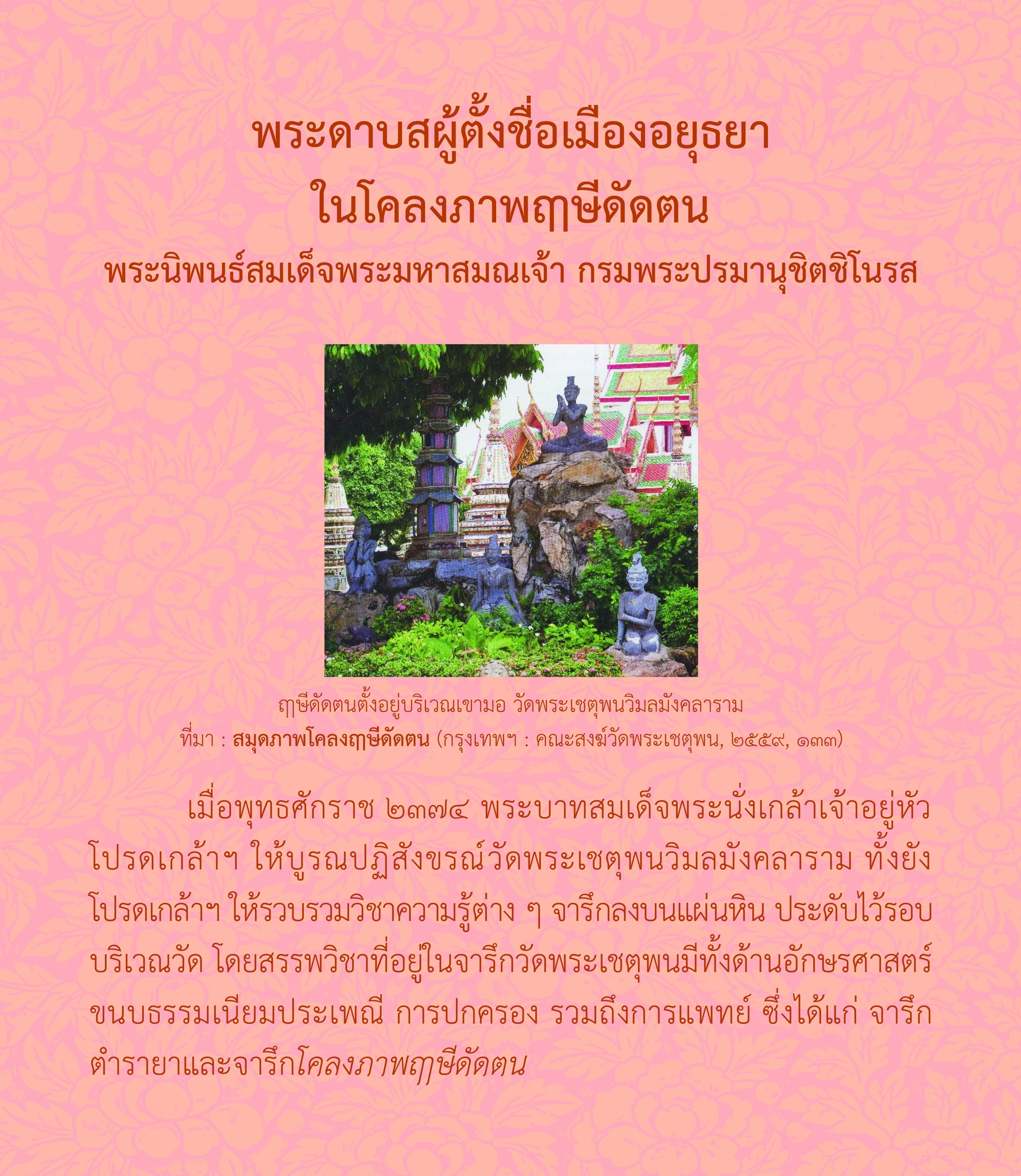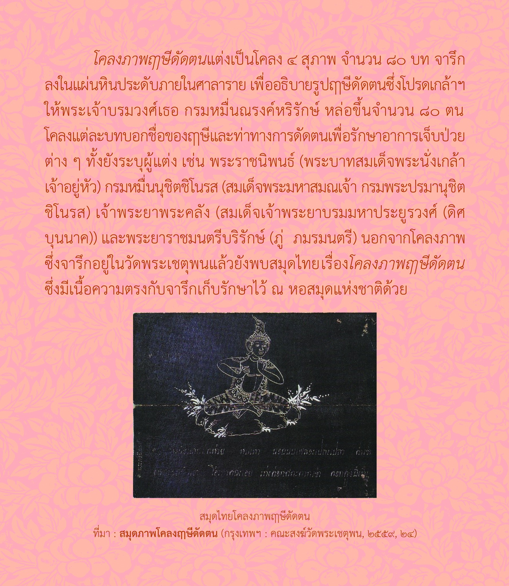 ในโคลงภาพฤๅษีดัดตน พระนิพนธ์สมเด็จพระมหาสมณเจ้า กรมพระปรมานุชิตชิโนรส โดย นายปารเมศ อภัยฤทธิรงค์ นักอักษรศาสตร์ปฏิบัติการ กลุ่มภาษาและวรรณกรรม สำนักวรรณกรรมและประวัติศาสตร์ กรมศิลปากร
