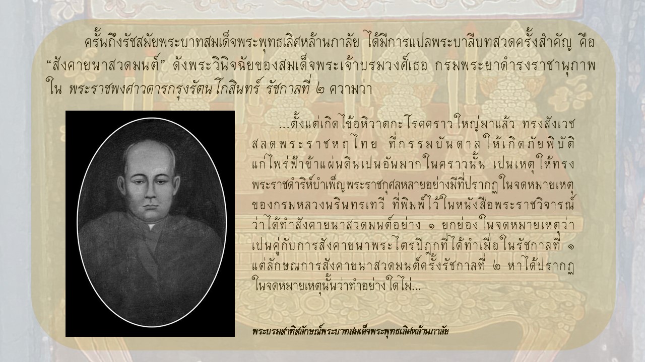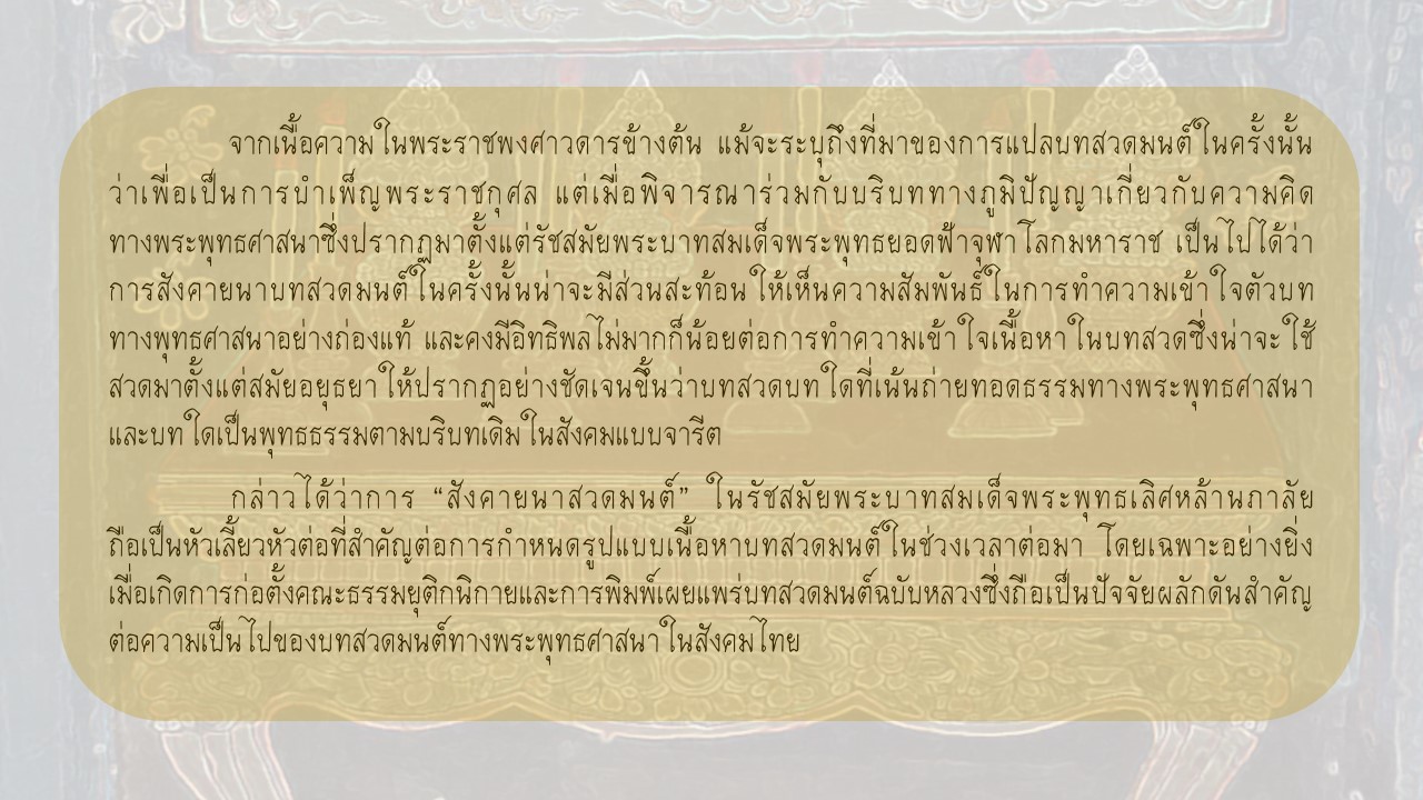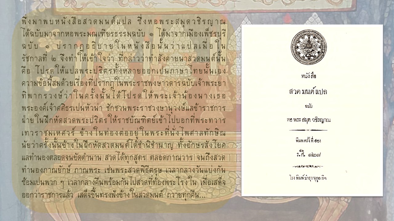 องค์ความรู้เรื่อง "การสังคายนาสวดมนต์ รัชสมัยพระบาทสมเด็จพระพุทธเลิศหล้านภาลัย"