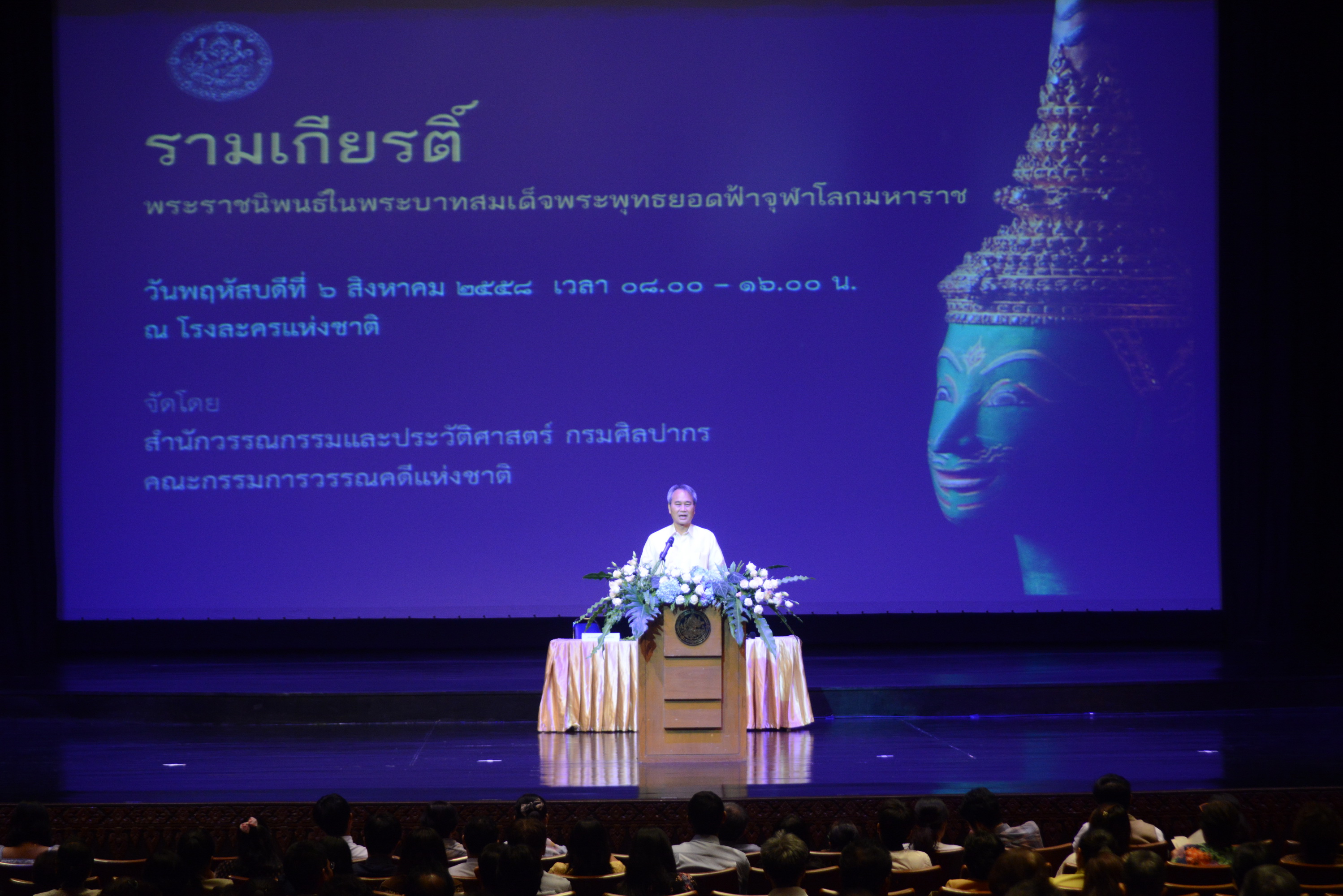 นายบวรเวท รุ่งรุจี อธิบดีกรมศิลปากรเป็นประธานในพิธีเปิดการบรรยายทางวิชาการ เรื่อง “รามเกียรติ์ พระราชนิพนธ์ในพระบาทสมเด็จพระพุทธยอดฟ้าจุฬาโลกมหาราช”ณ โรงละครแห่งชาติกรุงเทพฯ โดยมีนักวิชาการ ครู อาจารย์ นิสิต นักศึกษา และประชาชนผู้สนใจเข้าร่วมฟังการบรรยาย จำนวนกว่า ๕๐๐ คน เมื่อวันพฤหัสบดีที่ ๖ สิงหาคม ๒๕๕๘ เวลา ๐๘.๓๐ น.