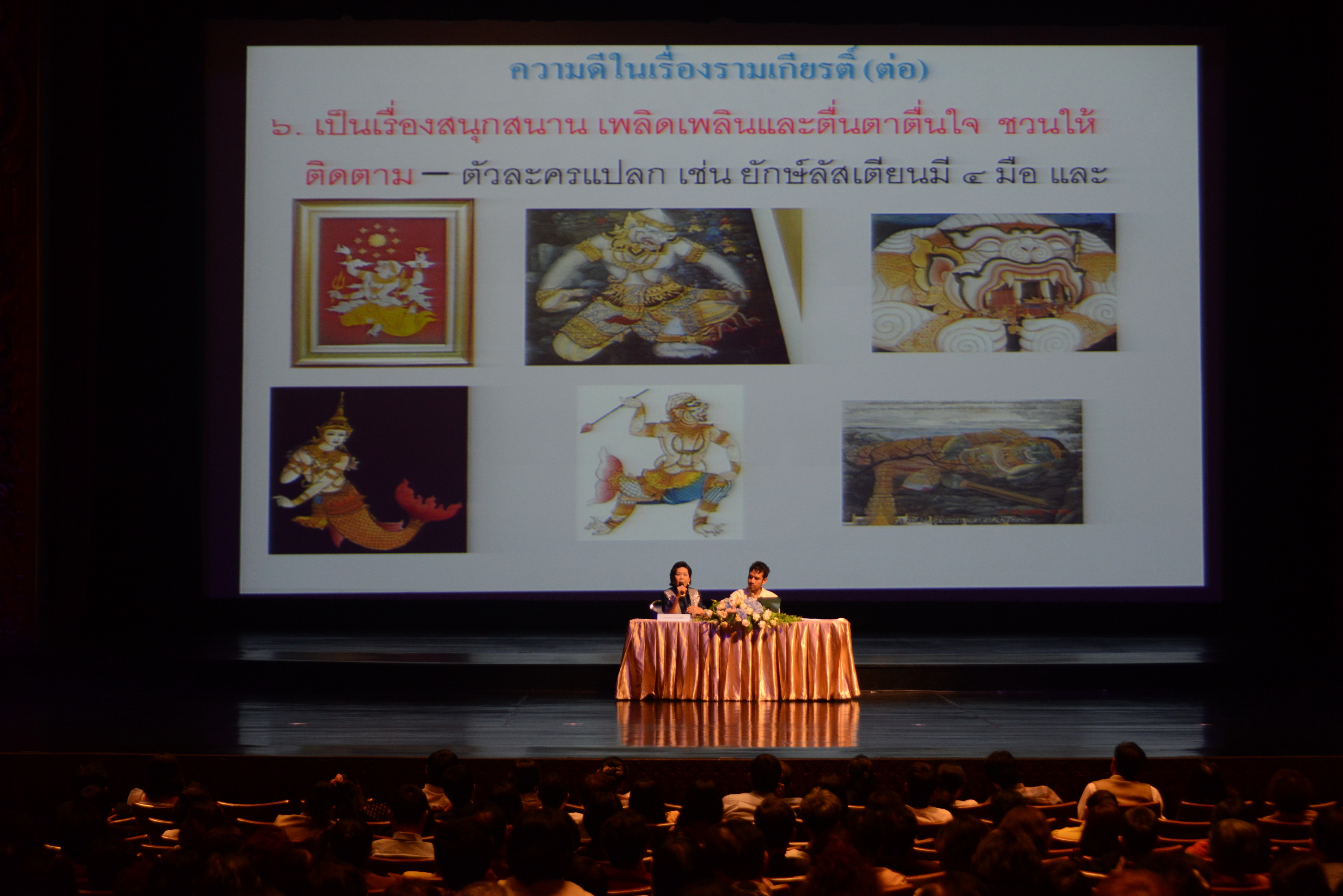 กระทรวงวัฒนธรรม โดยกลุ่มภาษาและวรรณกรรม สำนักวรรณกรรมและประวัติศาสตร์ กรมศิลปากร ในนามคณะกรรมการวรรณคดีแห่งชาติ จึงได้กำหนดจัดการบรรยายทางวิชาการเรื่อง รามเกียรติ์ พระราชนิพนธ์ในพระบาทสมเด็จพระพุทธยอดฟ้าจุฬาโลกมหาราช ประกอบการสาธิตและการแสดงโขนขึ้น เพื่อเผยแพร่ความรู้ความเข้าใจ และพระปรีชาญาณอันล้ำเลิศที่ทรงพระราชนิพนธ์วรรณคดีที่มีคุณค่าทางวรรณศิลป์และด้านนาฏยศาสตร์ ซึ่งการบรรยายมีหัวข้อที่น่าสนใจมากมาย ประกอบด้วย ช่วงเช้า การบรรยาย เรื่อง “ความเป็นเอกภาพในบทละครเรื่องรามเกียรติ์ พระราชนิพนธ์ในพระบาทสมเด็จพระพุทธยอดฟ้าจุฬาโลกมหาราช” โดยรองศาสตราจารย์ ดร.มณีปิ่น พรหมสุทธิรักษ์, การบรรยาย เรื่อง “ความดีความงามในบทละครเรื่องรามเกียรติ์