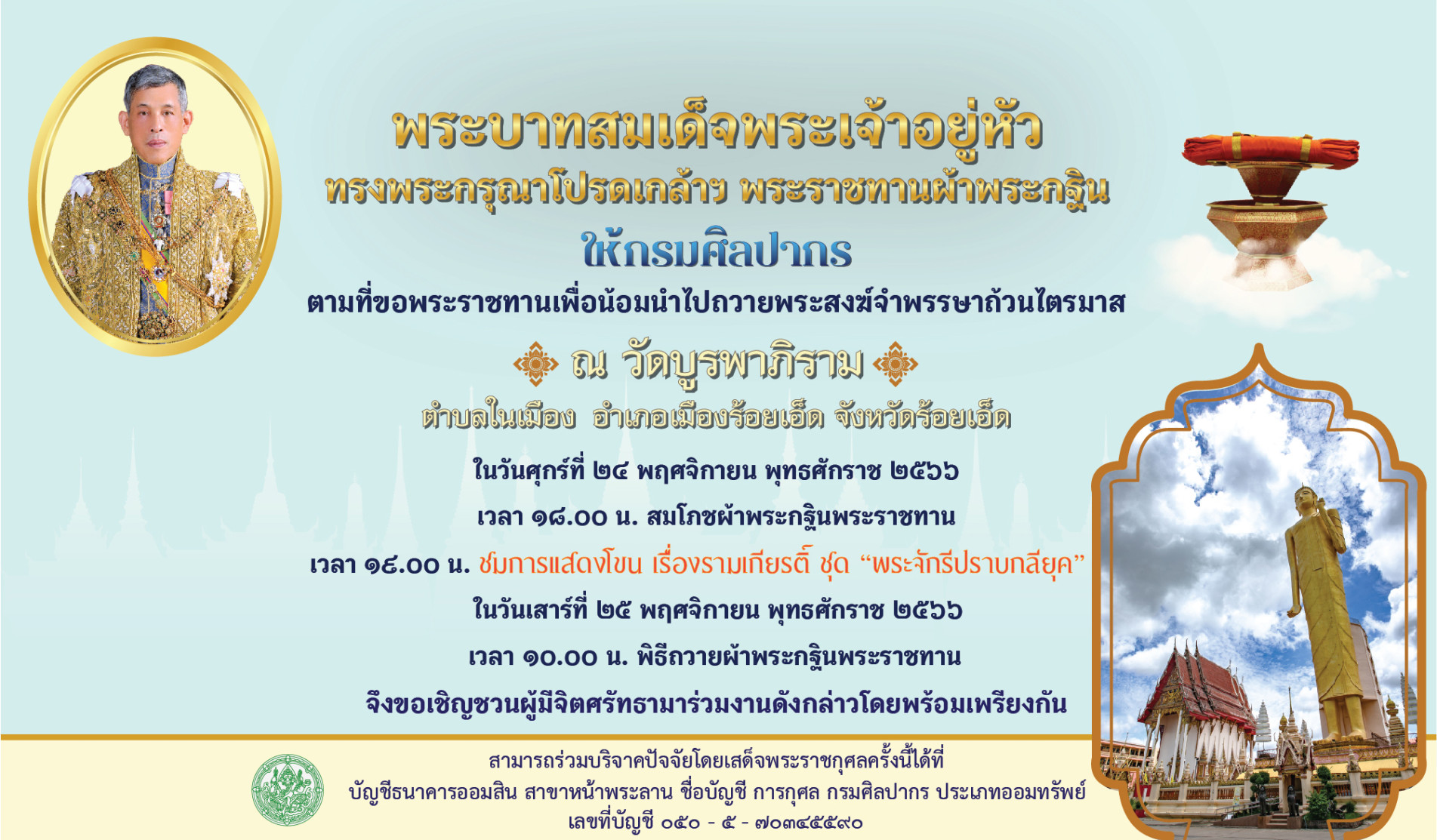 - ประกาศกรมศิลปากร เรื่อง ประกาศผู้ชนะการเสนอราคาจ้างซ่อมแซมรถยนต์หมายเลขทะเบียน ๕๑ - ๗๗๐๐ กรุงเทพมหานคร โดยวิธีเฉพาะเจาะจง พฤหัสบดี 18 ธันวาคม พ.ศ. 2568 34