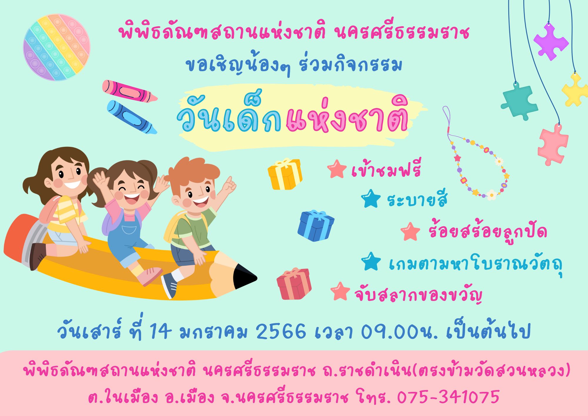 กรมศิลปากรเชิญชวนเด็กๆวัยรุ่นฟันน้ำนม ร่วมกิจกรรมวันเด็กแห่งชาติ ๒๕๖๖ ณ แหล่งเรียนรู้ทางวัฒนธรรมในสังกัดทั่วประเทศ