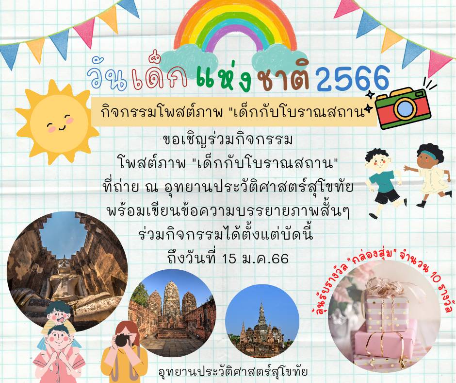 เนื่องในวันเด็กแห่งชาติ ประจำปี ๒๕๖๖ วันเสาร์ที่ ๑๔ มกราคม ๒๕๖๖ กรมศิลปากรเปิดแหล่งเรียนรู้ทางวัฒนธรรมให้เด็กและเยาวชนร่วมกิจกรรมฟรี ทั้งพิพิธภัณฑสถานแห่งชาติ อุทยานประวัติศาสตร์และหอสมุดแห่งชาติทั่วประเทศ โดยได้เตรียมกิจกรรมสำหรับเด็กและเยาวชนที่มีทั้งสาระและความบันเทิง เน้นการเรียนรู้ผ่านกิจกรรมที่สร้างความสนุกสนานและหลากหลาย เพื่อให้ได้รับความรู้และเกิดความคิดสร้างสรรค์ เป็นการเปิดประสบการณ์การเรียนรู้นอกห้องเรียน ปลูกจิตสำนึกด้านการอนุรักษ์มรดกศิลปวัฒนธรรมของชาติ