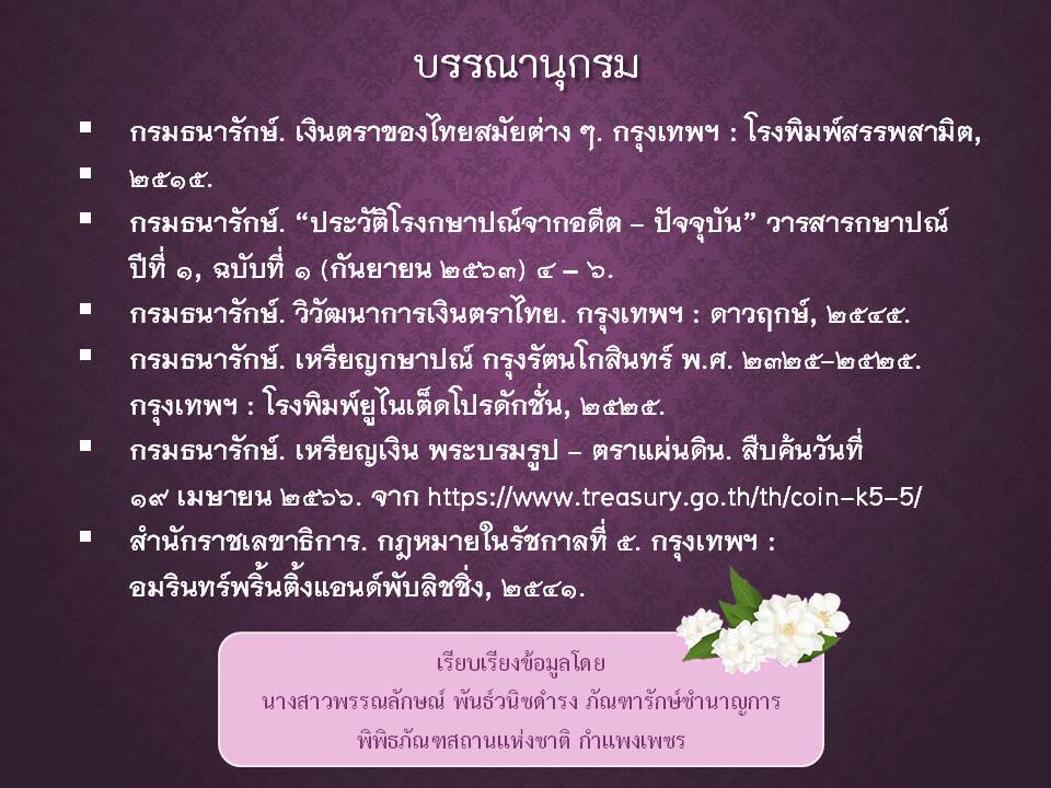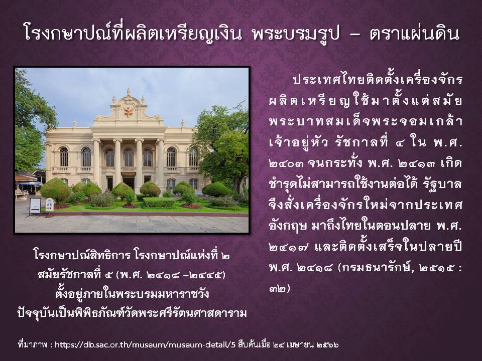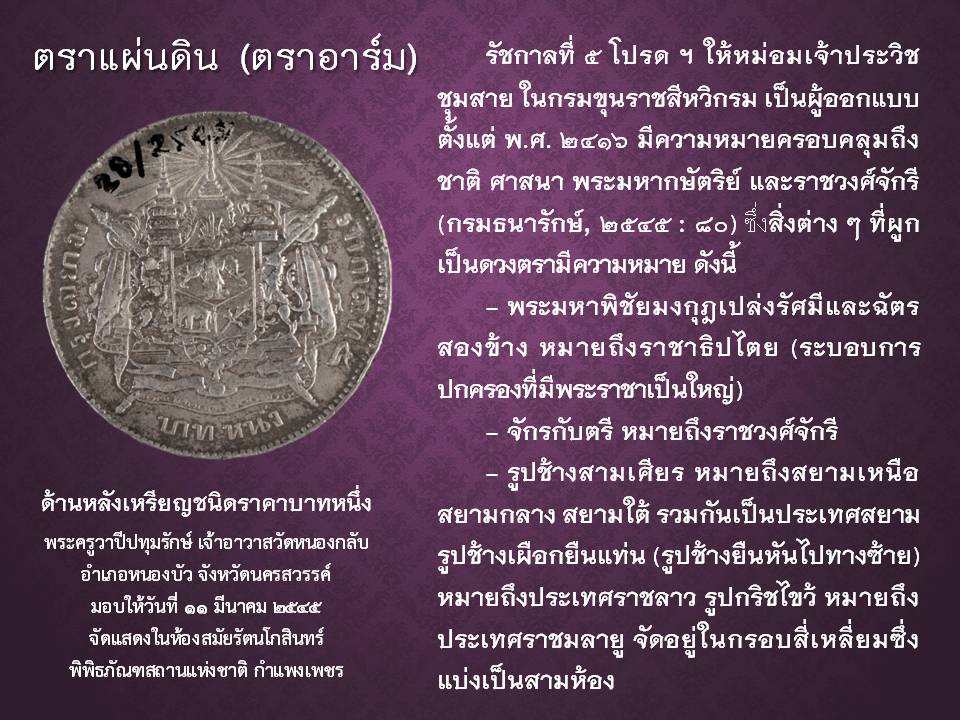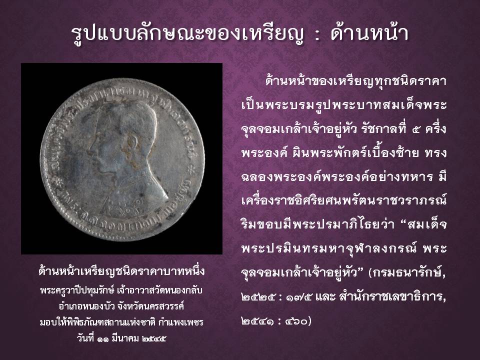 องค์ความรู้จากพิพิธภัณฑสถานแห่งชาติ กำแพงเพชร เรื่อง “เหรียญเงินพระบรมรูป - ตราแผ่นดิน แรกเริ่มการประทับพระบรมรูปพระมหากษัตริย์ไทยลงบนเหรียญกษาปณ์”