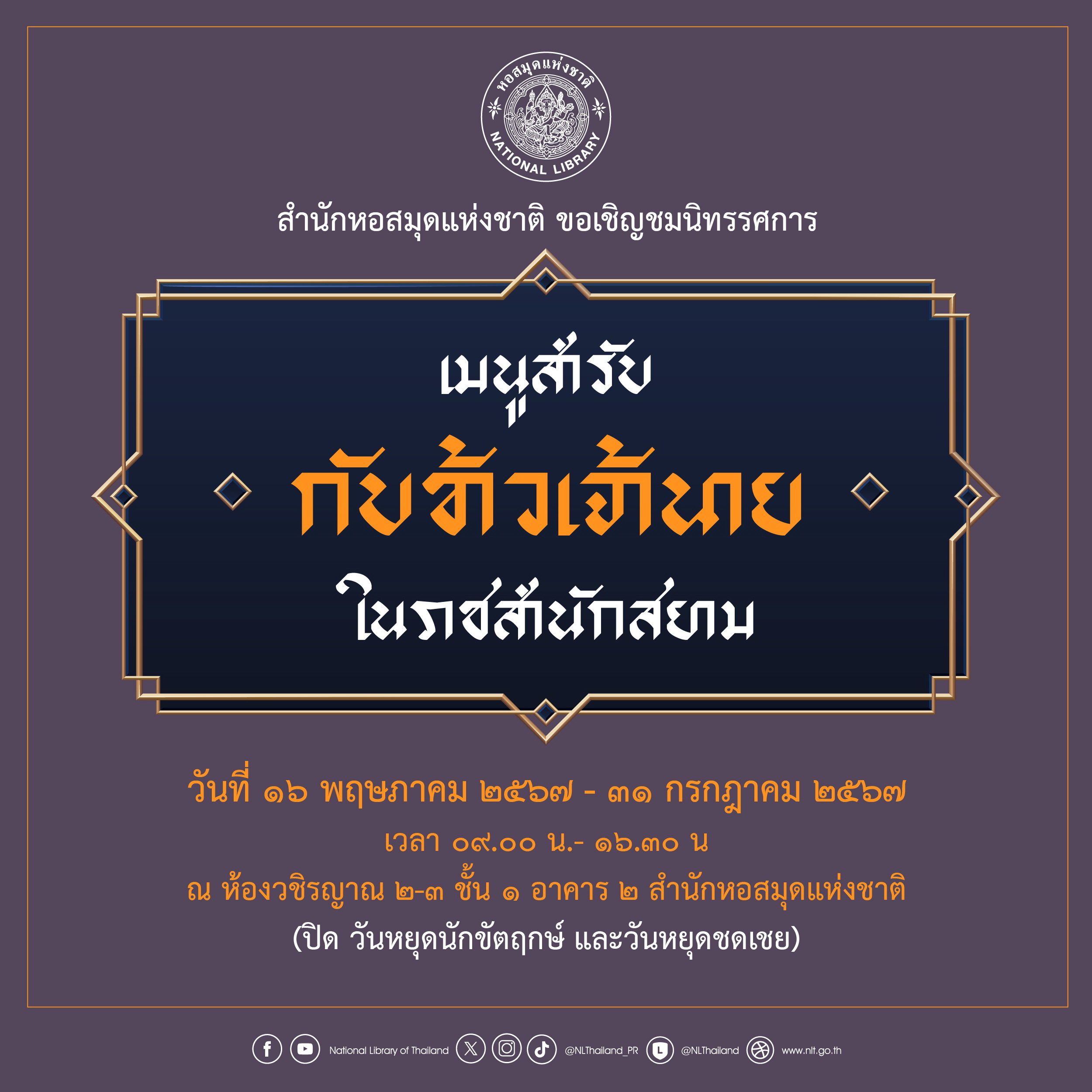 หอสมุดแห่งชาติ ขอเชิญชมนิทรรศการ “เมนูสำรับ กับข้าวเจ้านายในราชสำนักสยาม”