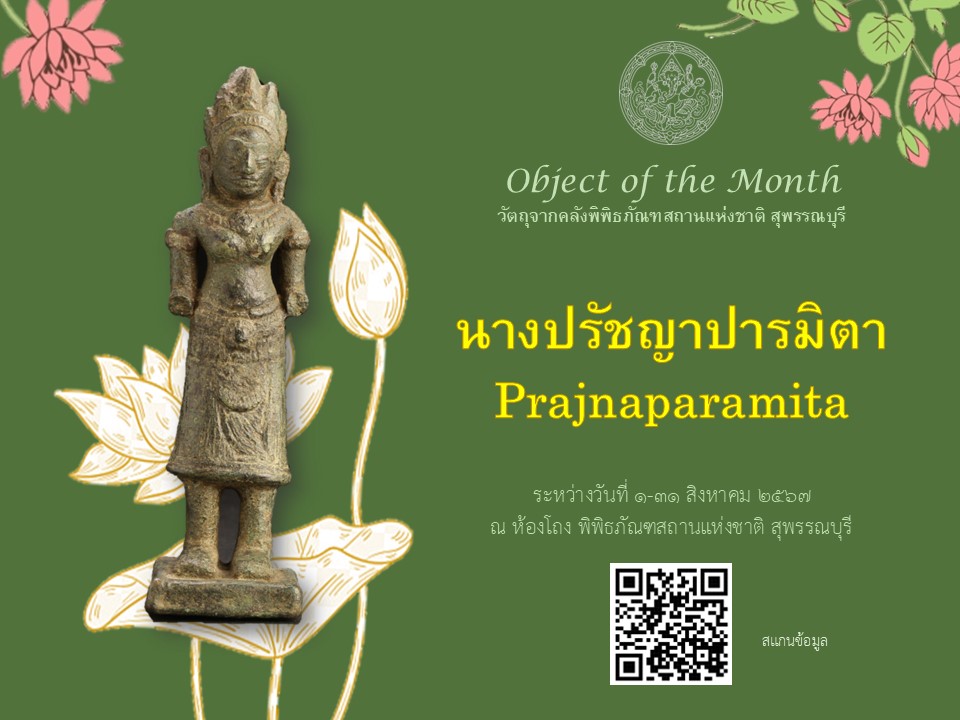 พิพิธภัณฑสถานแห่งชาติ สุพรรณบุรี เชิญชมนิทรรศการหมุนเวียน "Object of the Month" วัตถุจากคลังพิพิธภัณฑสถานแห่งชาติ สุพรรณบุรี ประจำเดือน "สิงหาคม" เชิญพบกับ "นางปรัชญาปารมิตา"