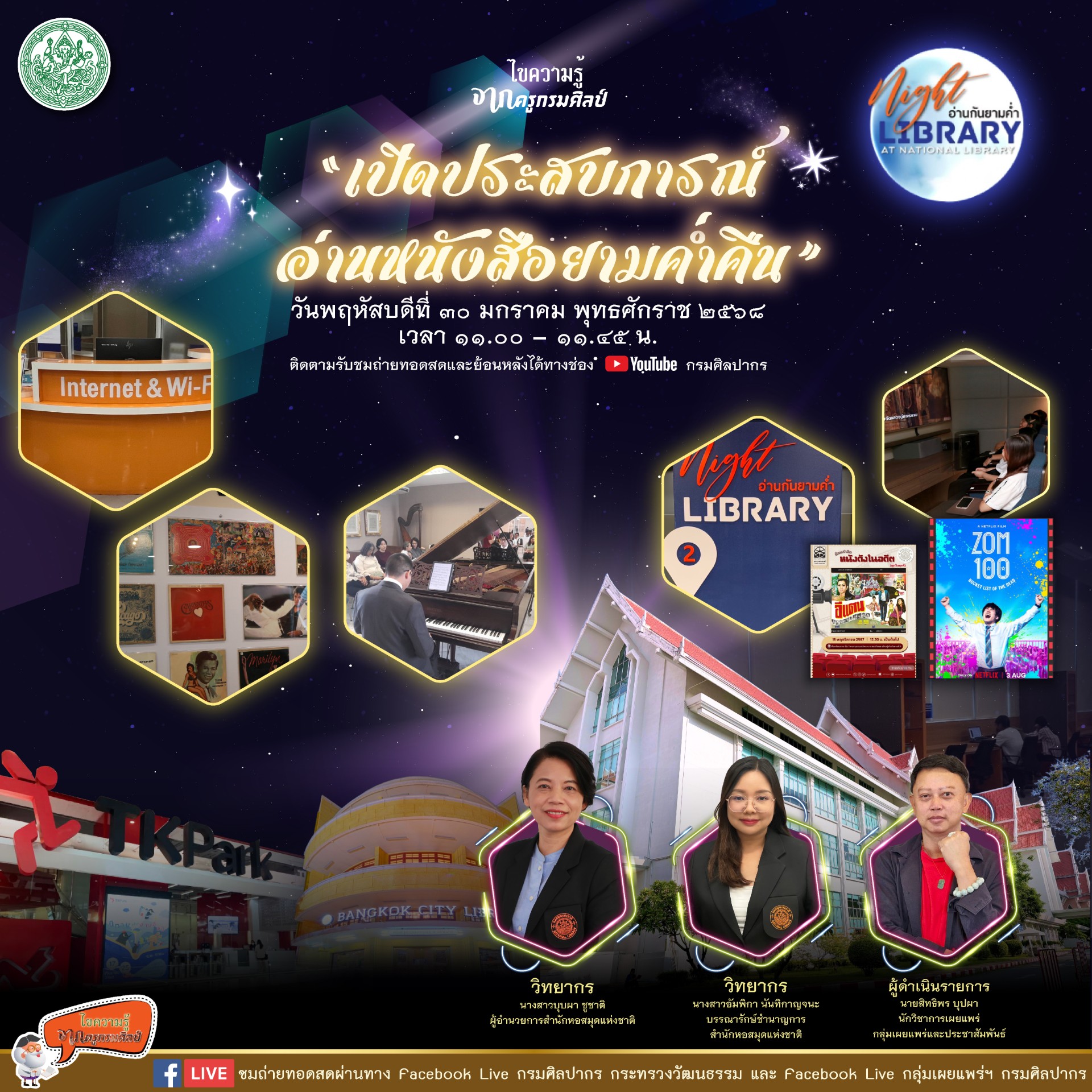 ขอเชิญชมถ่ายทอด Facebook Live รายการไขความรู้จากครูกรมศิลป์ “เปิดประสบการณ์อ่านหนังสือยามค่ำคืน“