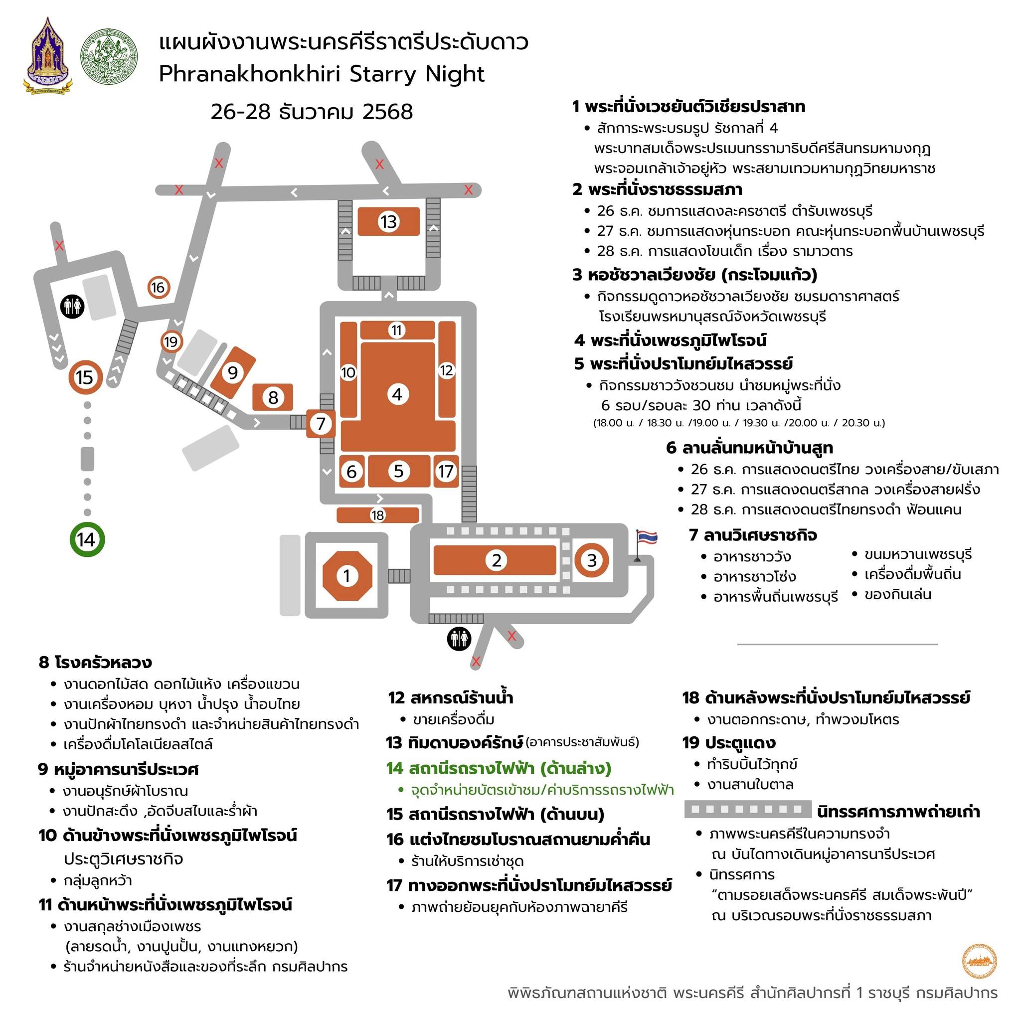 พิพิธภัณฑสถานแห่งชาติ พระนครคีรี จังหวัดเพชรบุรี ขอเชิญชวนทุกท่านเข้าร่วมงาน "พระนครคีรีราตรีประดับดาว (Phranakhonkhiri Starry Night)" ระหว่างวันที่ 26 - 28 ธันวาคม 2568 ในเวลา 18.00 น. - 21.00 น. ครั้งแรกของการเปิดเขตนารีประเวศ (เขตพระราชฐานชั้นใน หรือที่เรียกกันว่า "ฝ่ายใน") ให้ทุกท่านได้เข้าชม พร้อมร่วมกิจกรรมมากมาย ดังนี้ - พิพิธภัณฑ์ยามราตรี (Night Museum) ครั้งแรกของพระนครคีรี