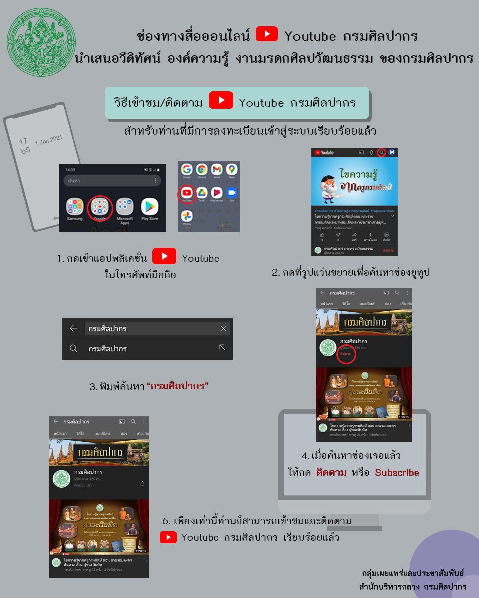 ช่องทางสื่อออนไลน์ Youtube กรมศิลปากร