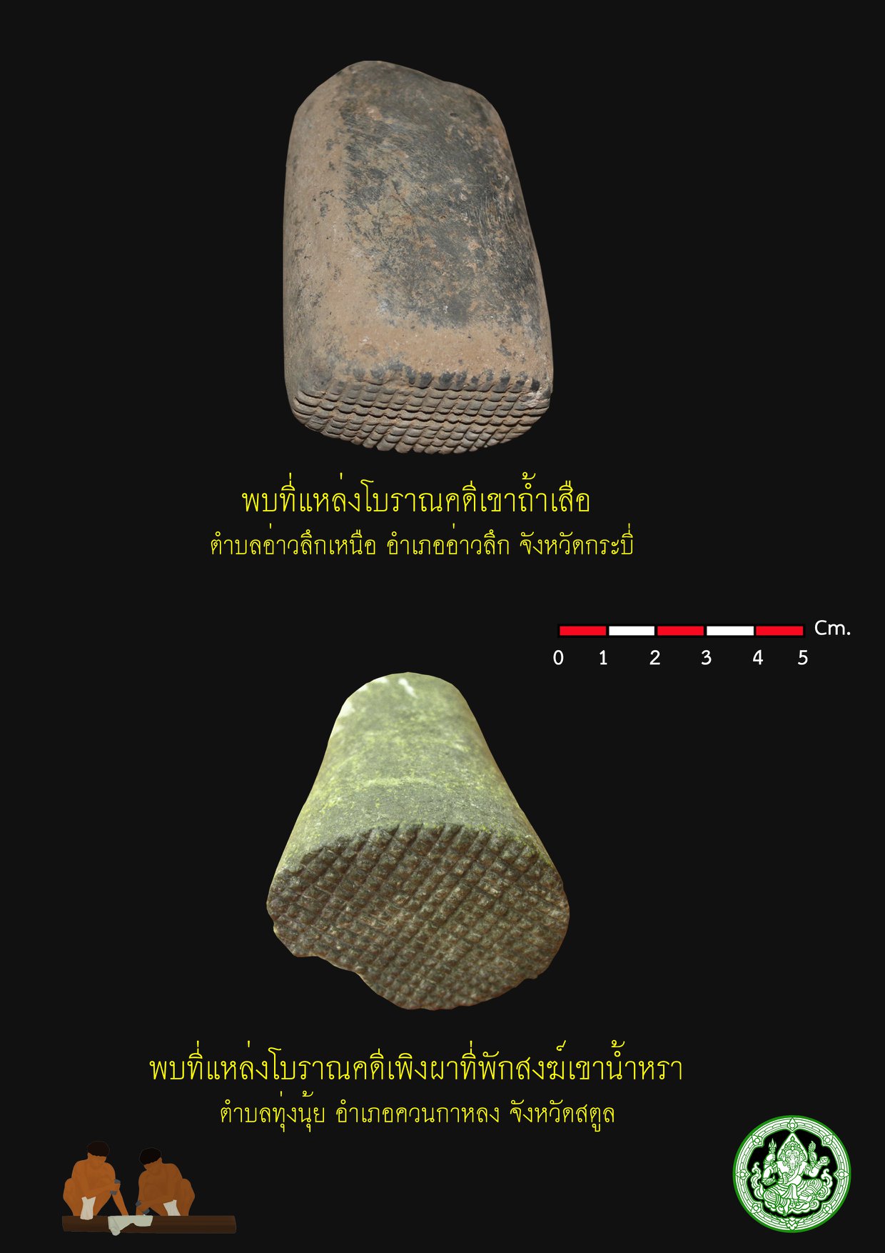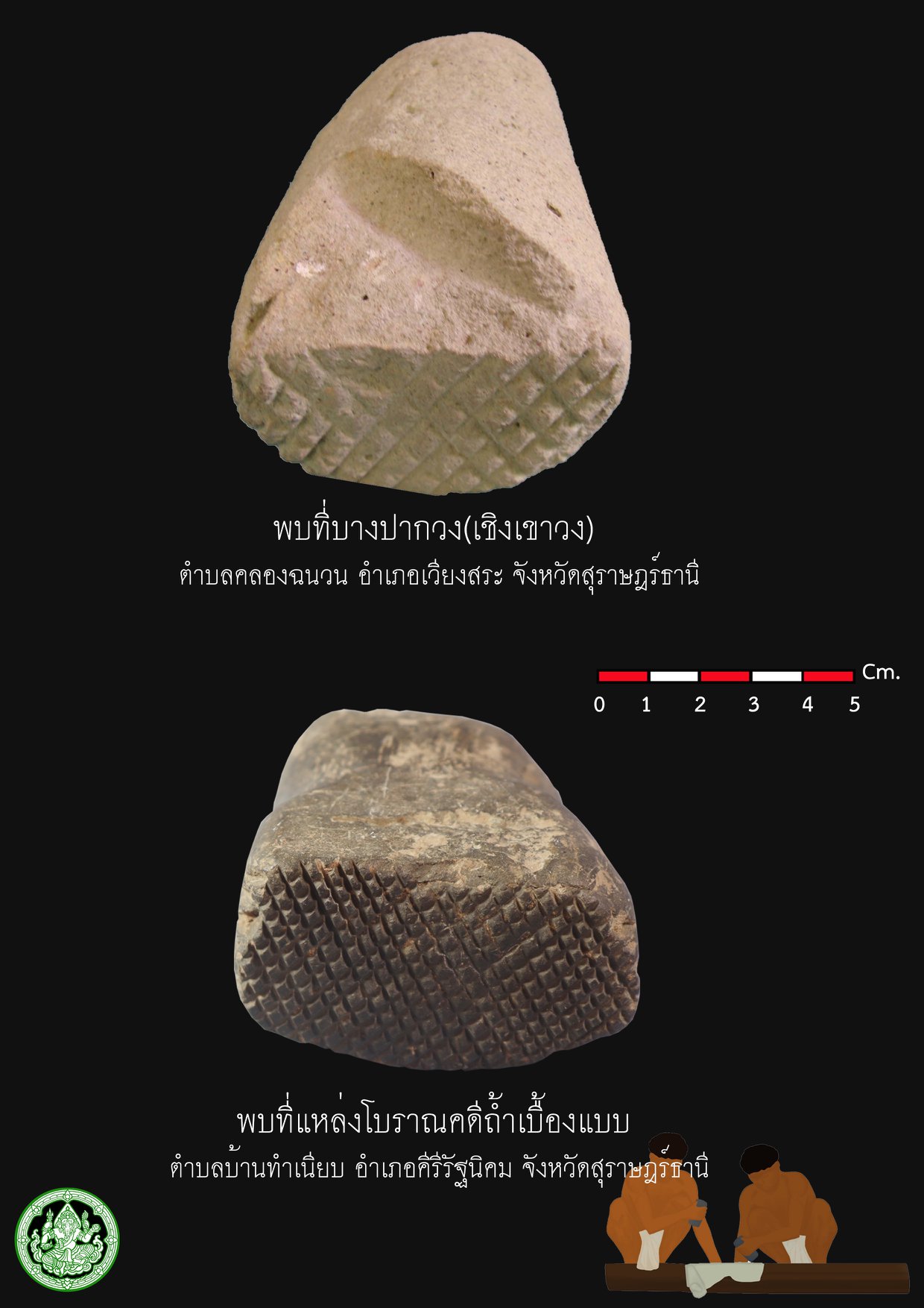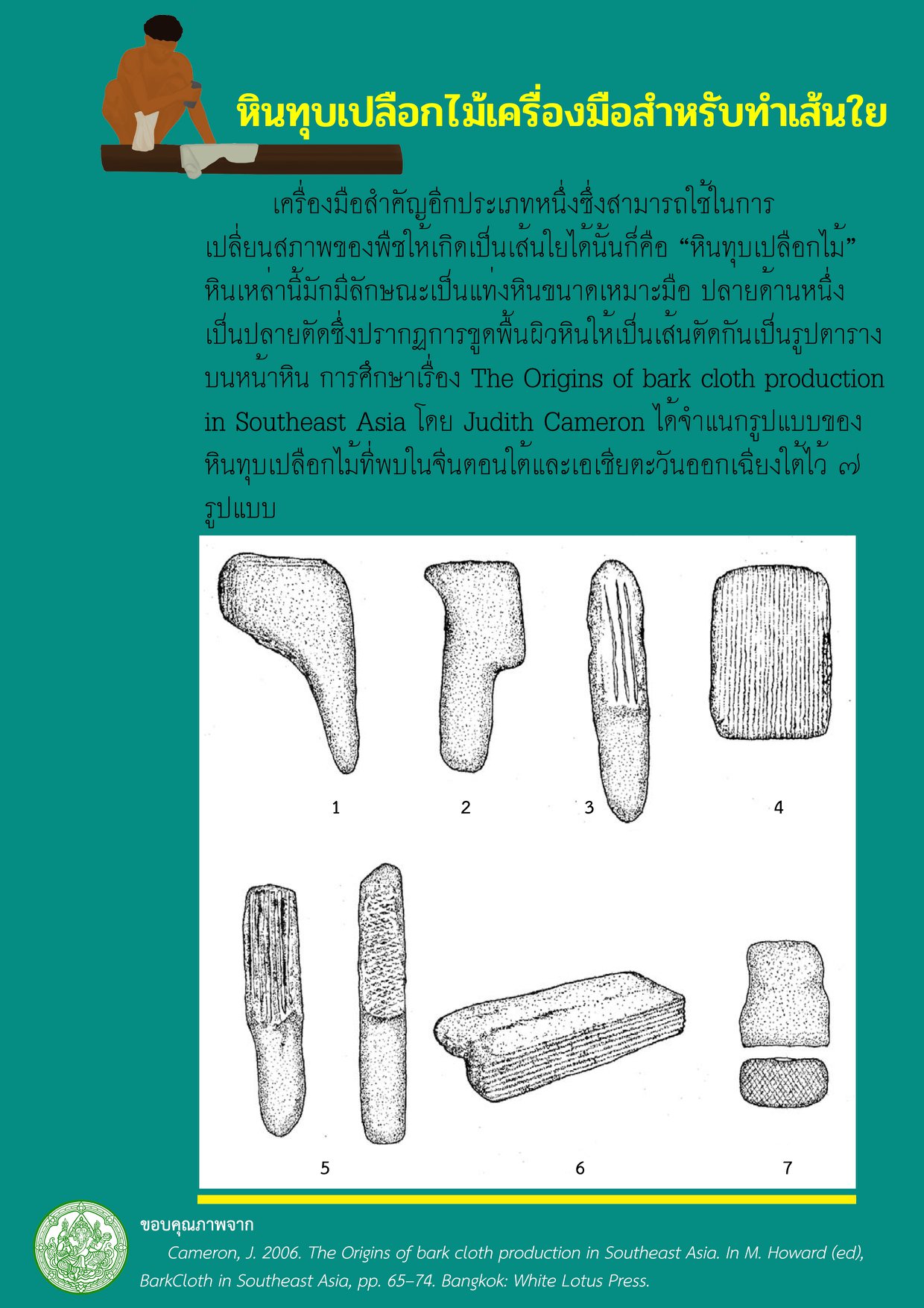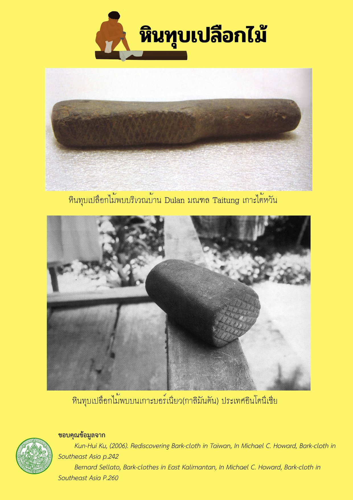 หินทุบเปลือกไม้ Bark-cloth เครื่องมือสำหรับทำเส้นใยยุคก่อนประวัติศาสตร์ที่พบในภาคใต้