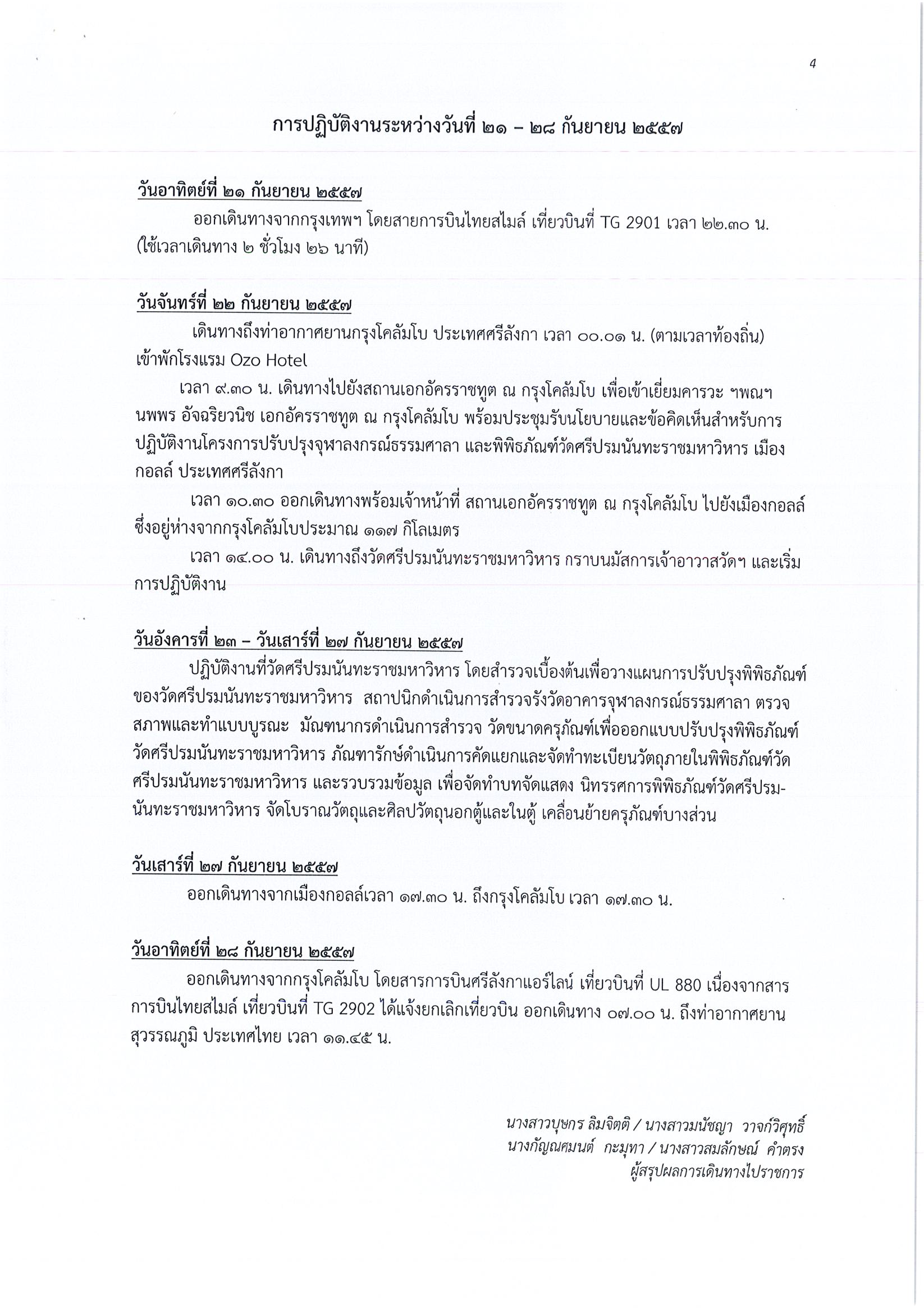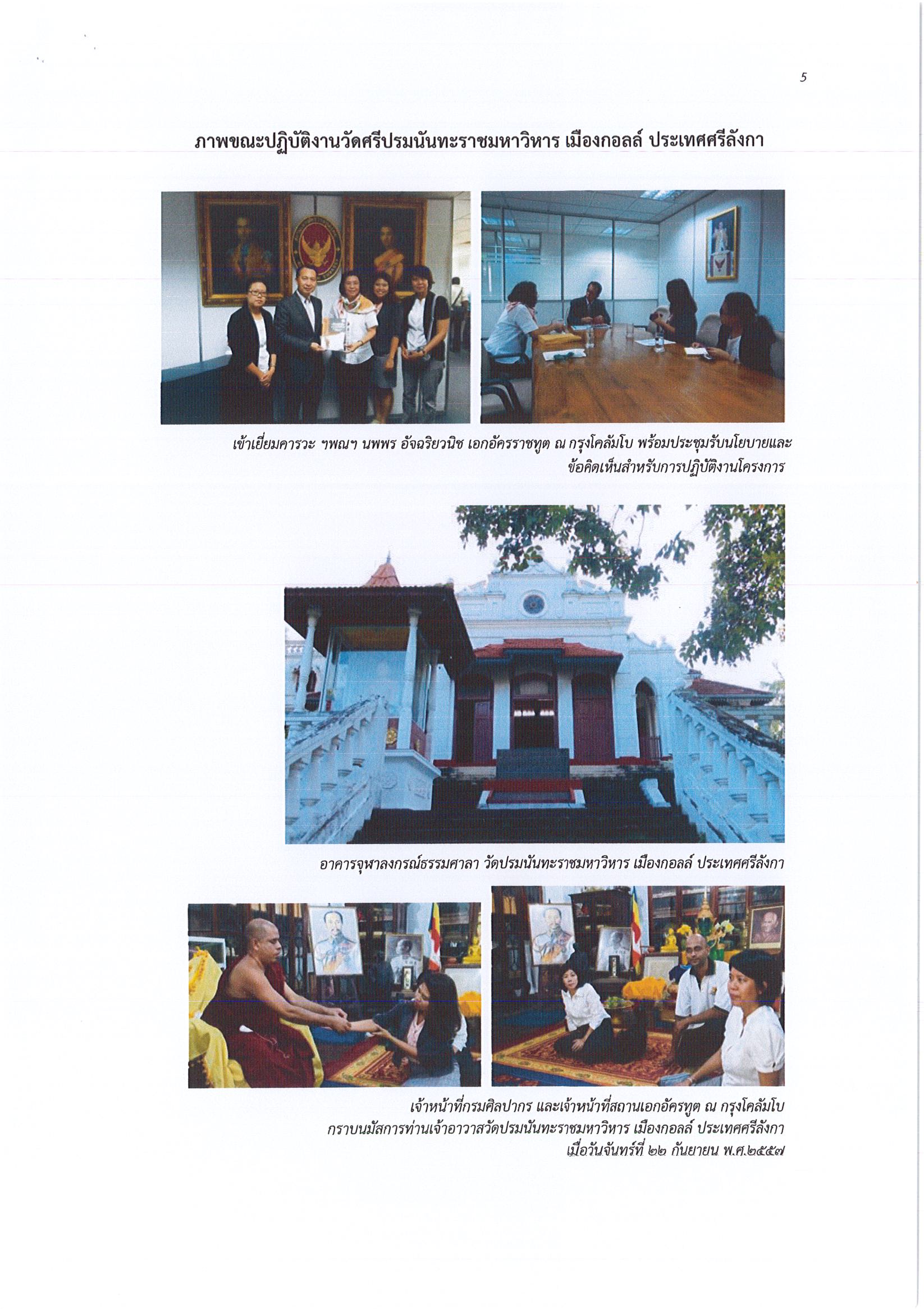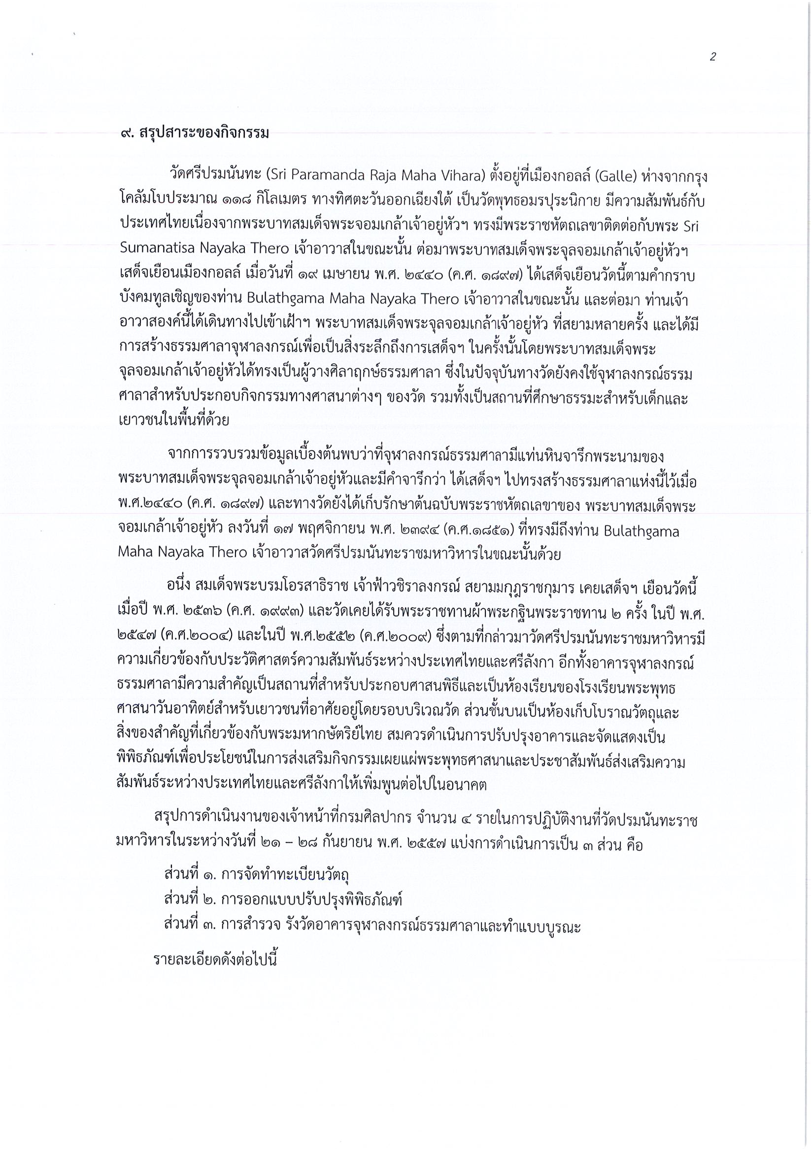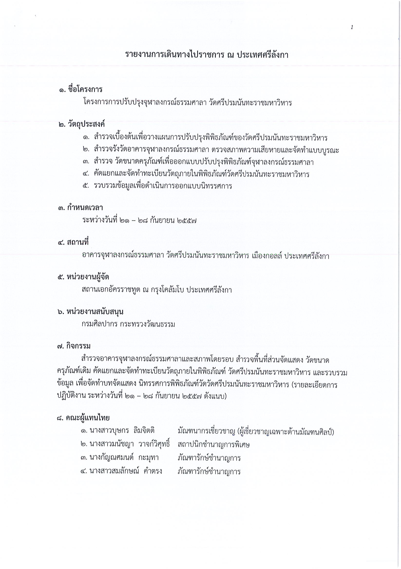 รายงานการเดินทางไปราชการ ณ สาธารณรัฐสังคมนิยมประชาธิปไตยศรีลังกา ระหว่างวันที่ 21 – 28 กันยายน 2558 โครงการปรับปรุงจุฬาลงกรณ์ธรรมศาลา วัดศรีปรมนันทะราชมหาวิหาร กรุงโคลัมโบ