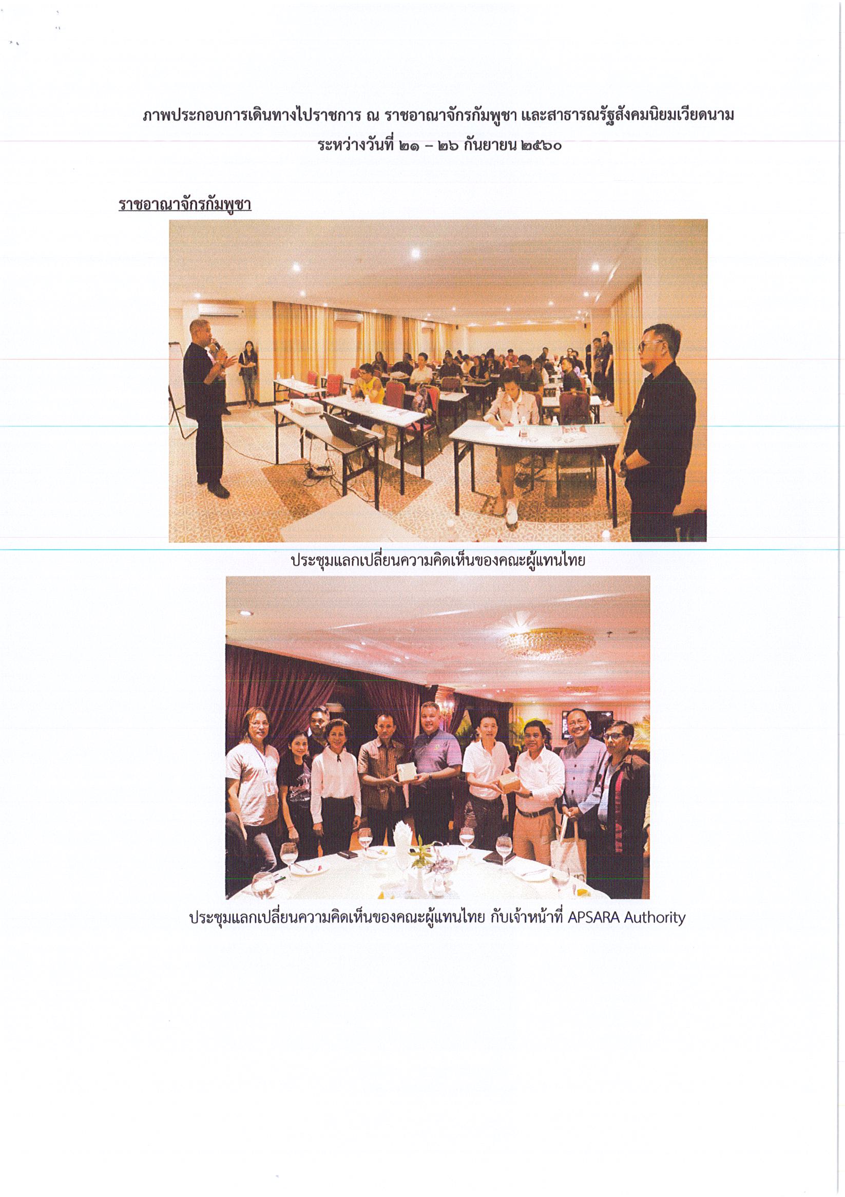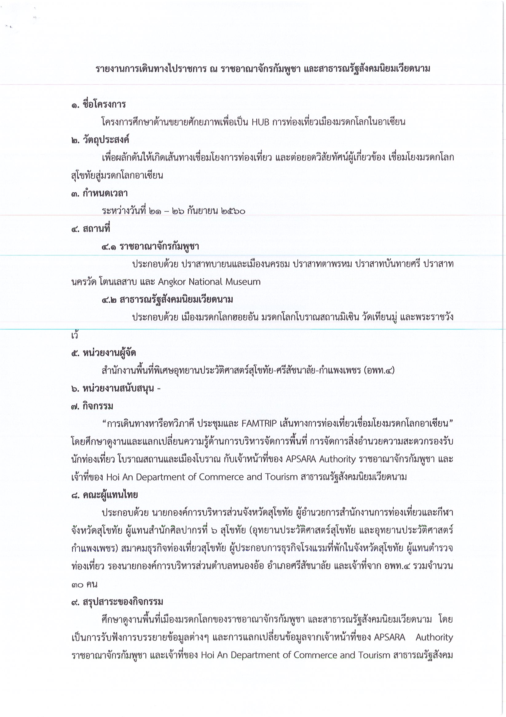 รายงานการเดินทางไปราชการ ณ ราชอาณาจักรกัมพูชา และ สาธารณรัฐสังคมนิยมเวียดนาม ระหว่างวันที่ 21 – 26 กันยายน 2560 โครงการศึกษาด้านการขยายศักยภาพเพื่อเป็น HUB การท่องเที่ยวเมืองมรดกโลกในอาเซียน