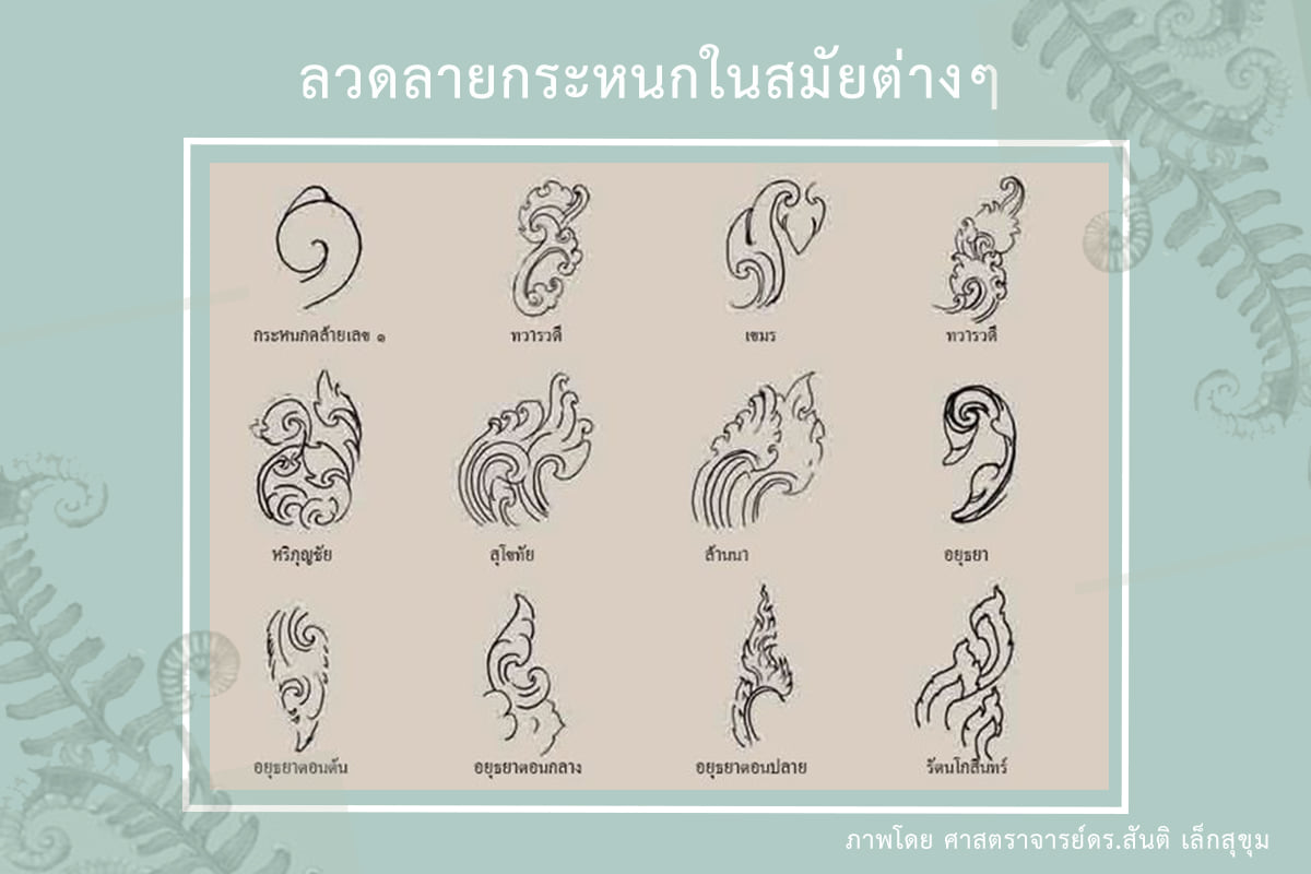 - สันติ เล็กสุขุม. พัฒนาการของลายไทย : กระหนกกับเอกลักษณ์ไทย. นนทบุรี : เมืองโบราณ, ๒๕๕๓.