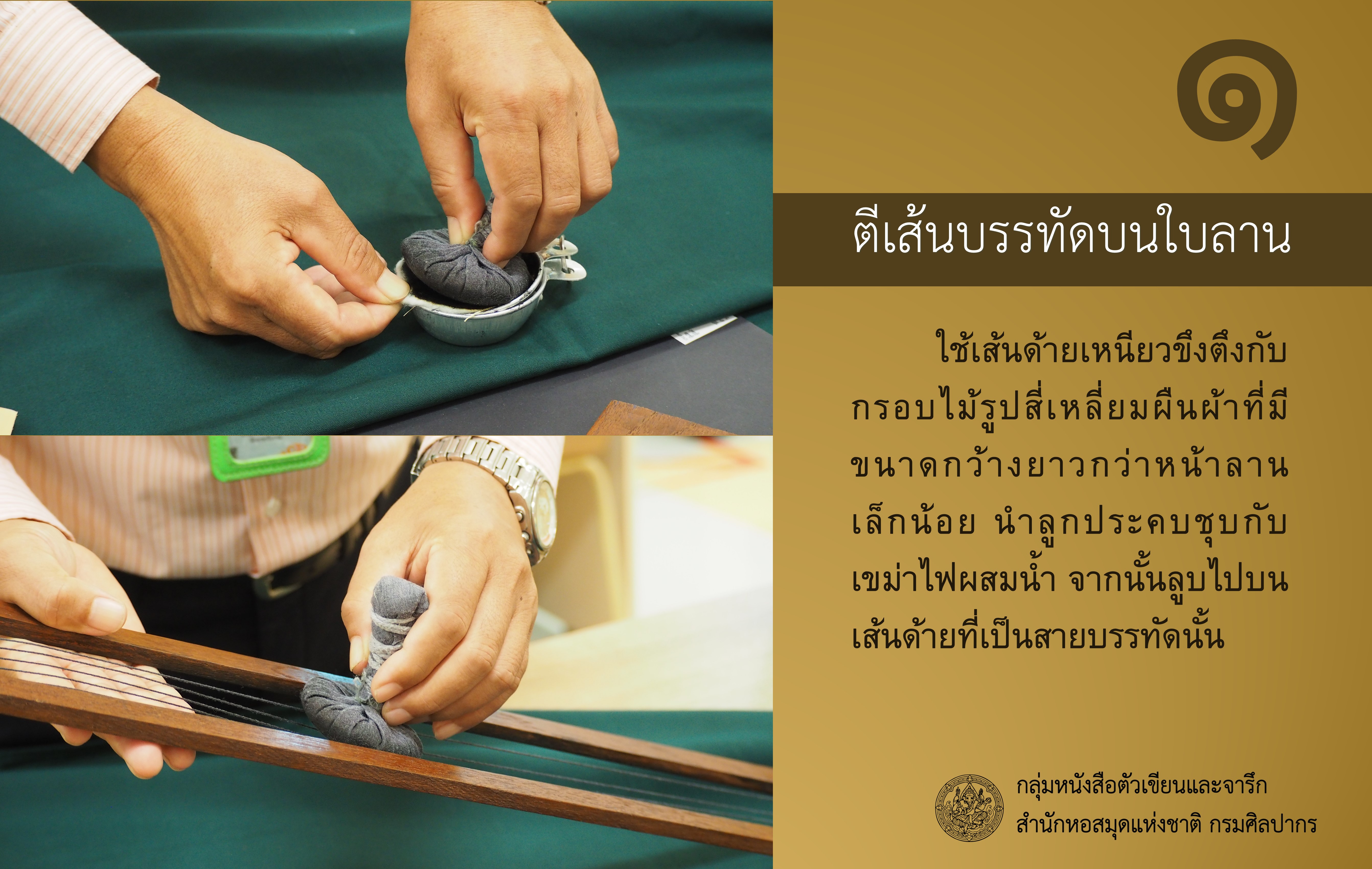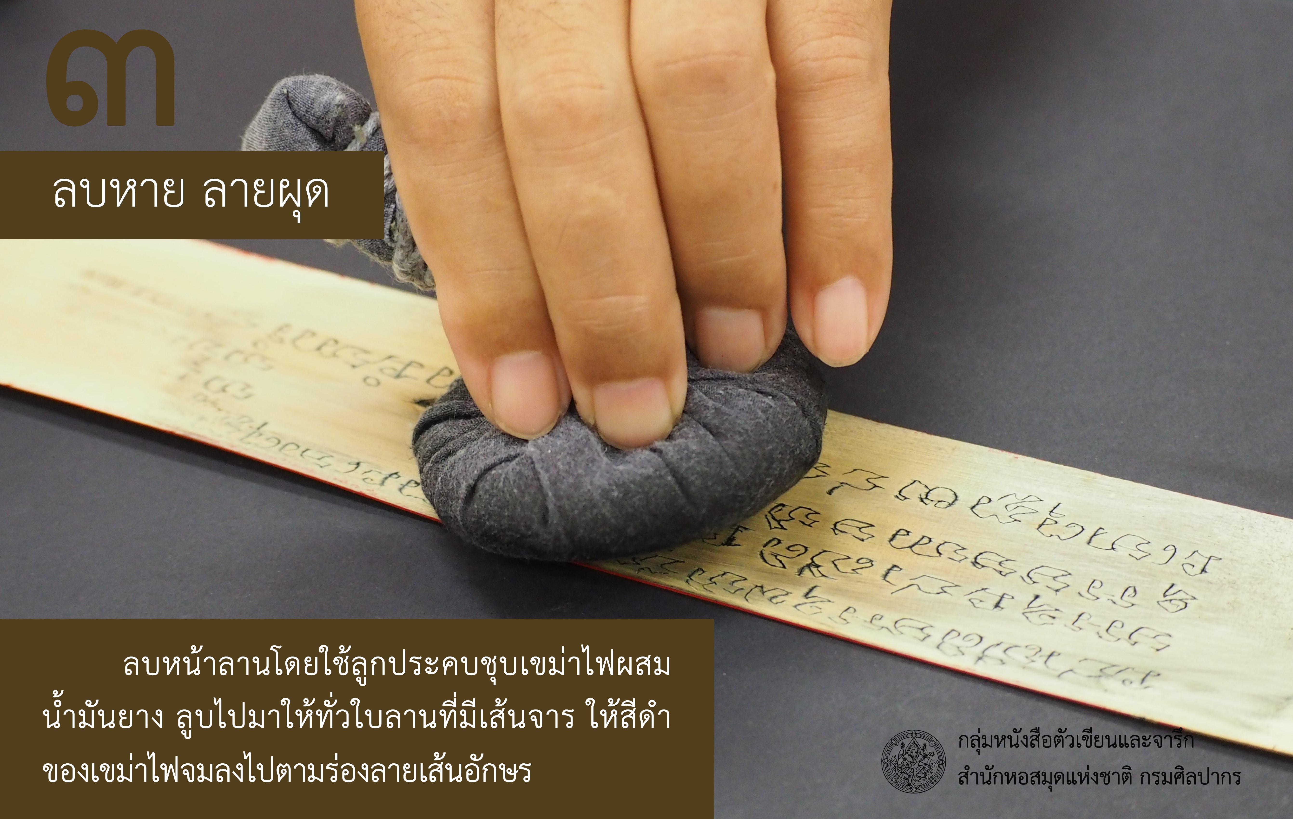 เรียบเรียง/สาธิตโดย นายจุง ดิบประโคน นักภาษาโบราณชำนาญการพิเศษ กลุ่มหนังสือตัวเขียนและจารึก สำนักหอสมุดแห่งชาติ