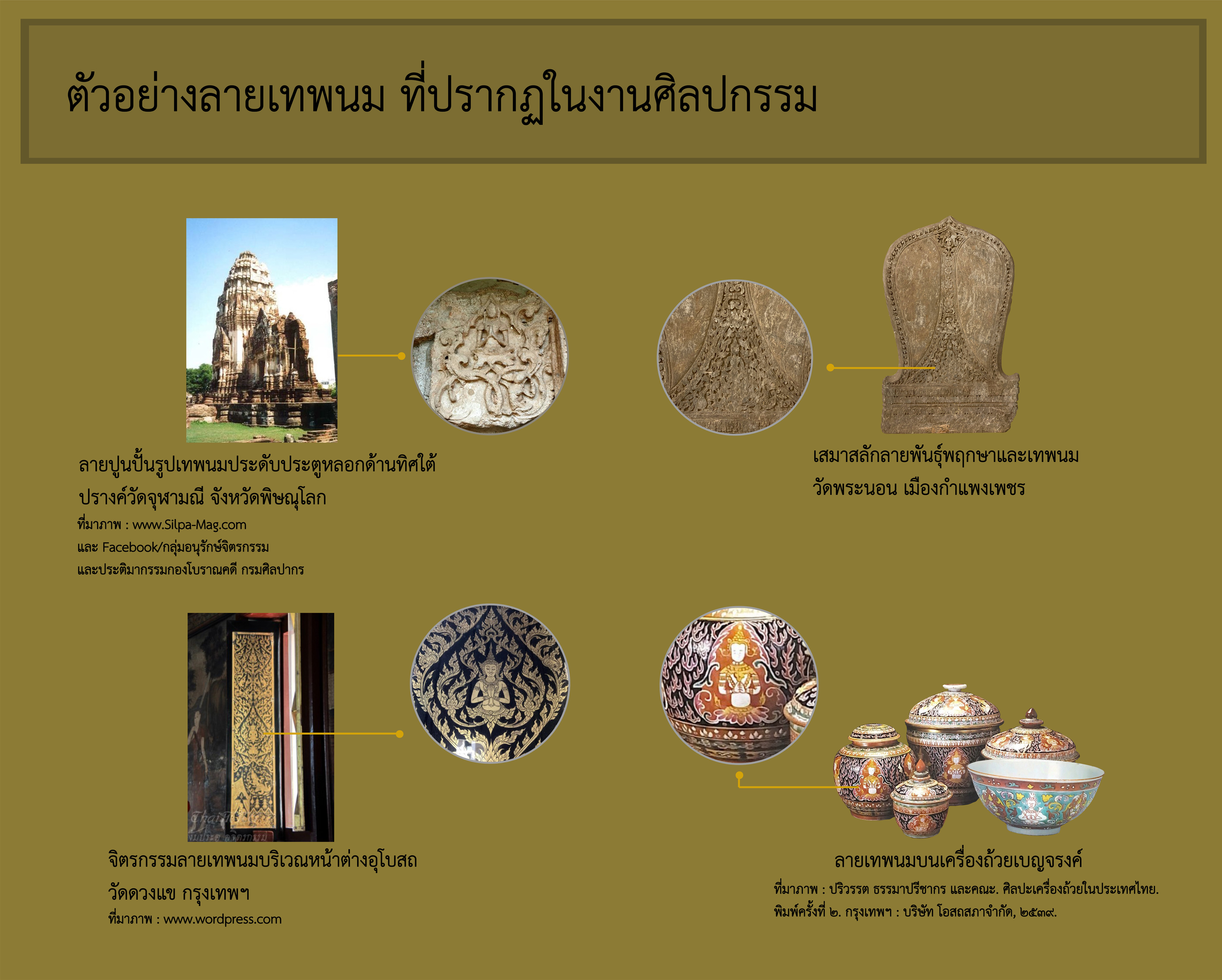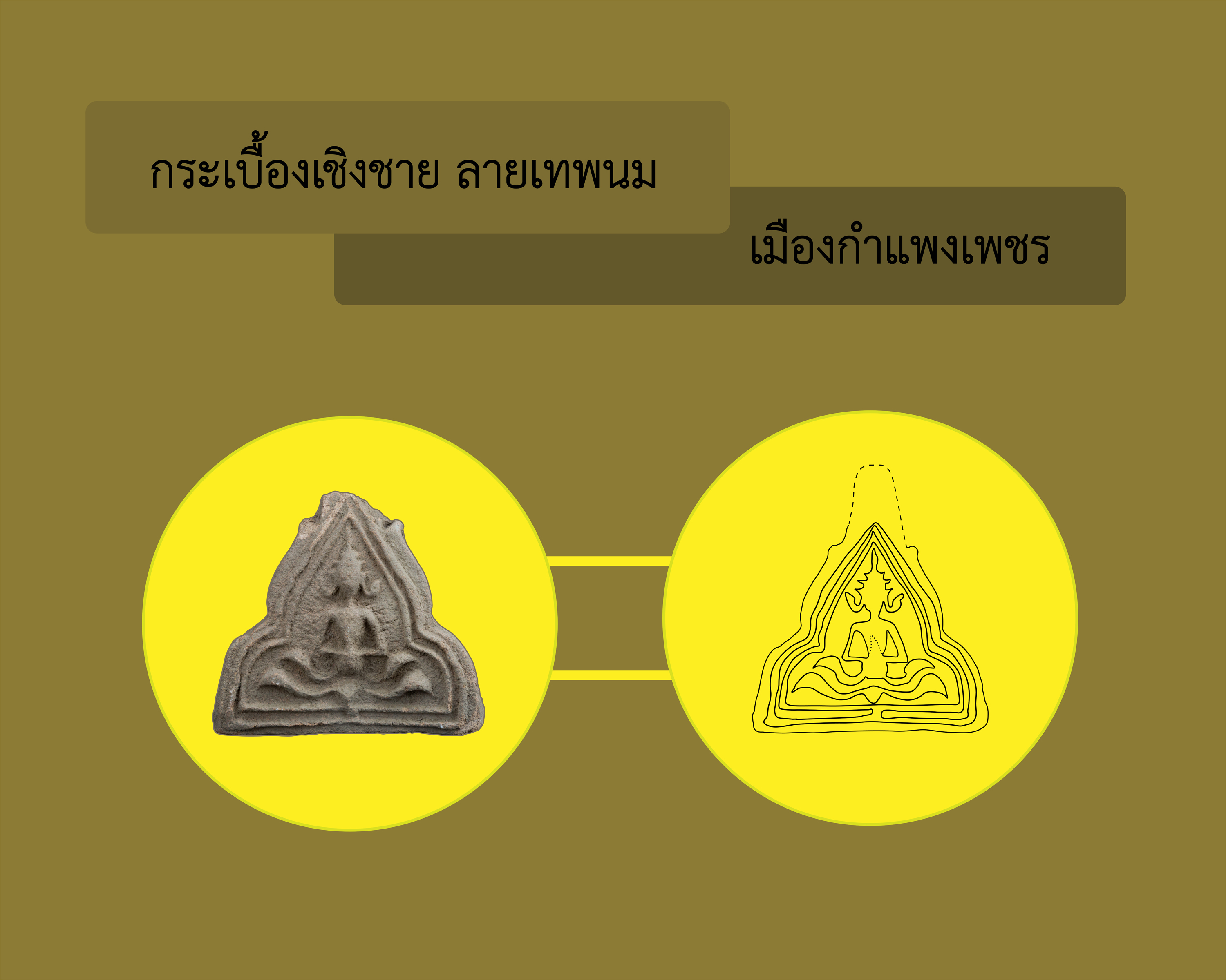 - เสมาหินชนวนสลักลายพันธุ์พฤกษาและเทพนม พบที่วัดพระนอน จังหวัดกำแพงเพชร