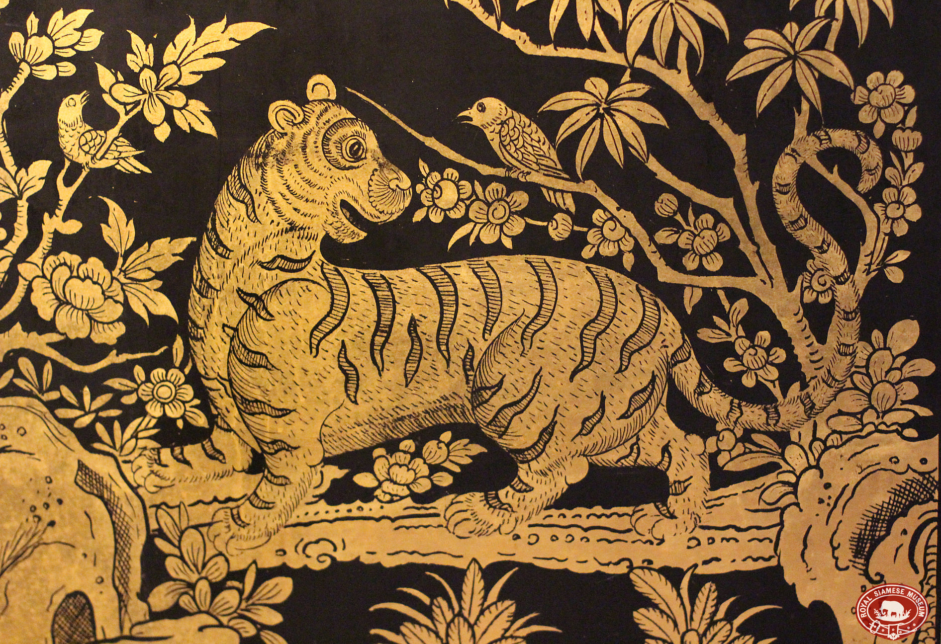 ดังนั้น “เสือ “จึงเป็นภาพแทนของความดุร้ายและความแกร่งกล้า จิตรกรรมไทยมักปรากฏภาพเสืออยู่สองท่าทางคือ ภาพเสือขณะกำลังหมอบ กับเสือกำลังขย้ำเหยื่อ