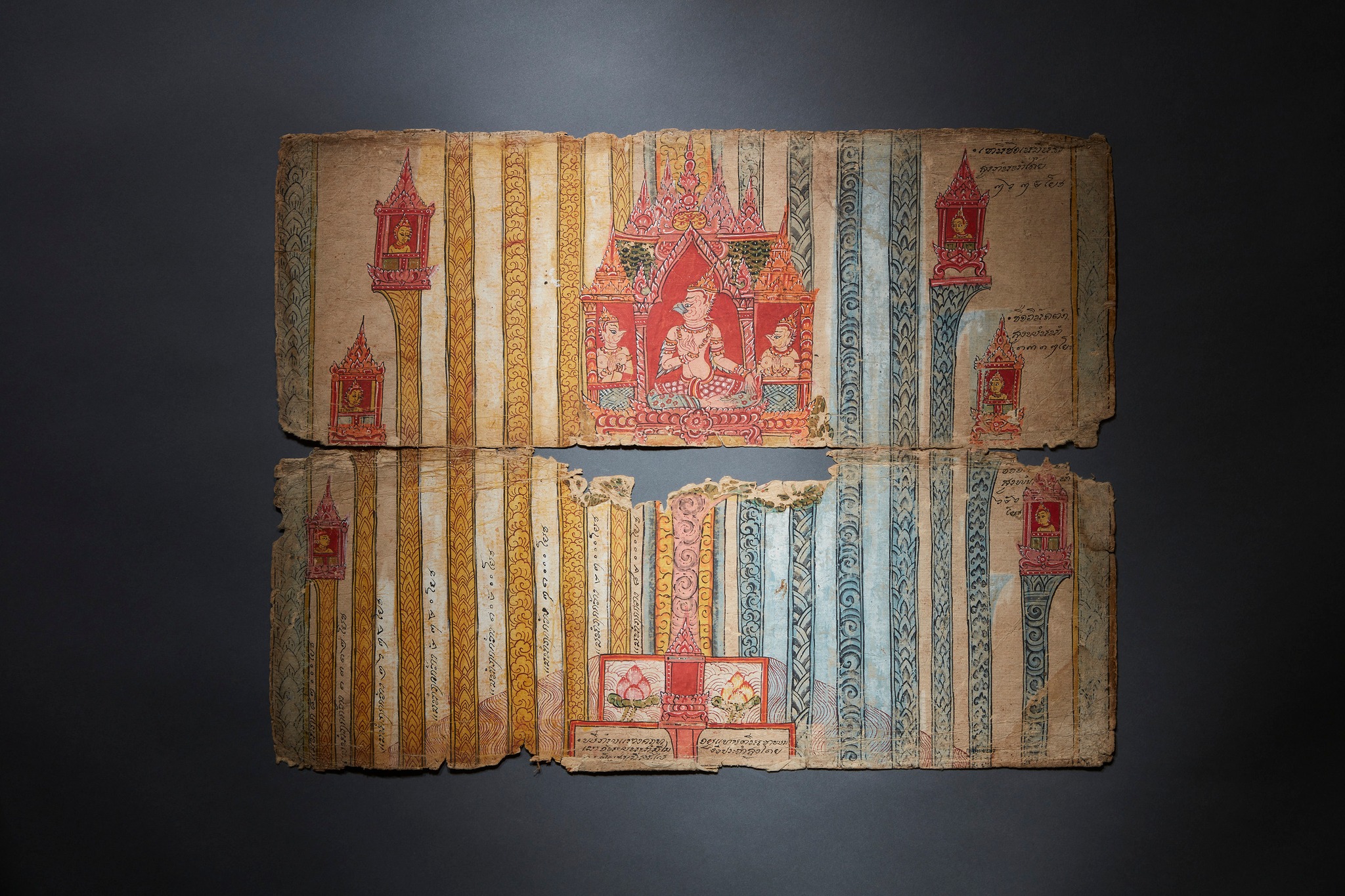 ภาพ: รูปพิภพแห่งครุฑ ในสมุดภาพไตรภูมิสมัยกรุงศรีอยุธยา เลขที่ ๖ แสดงให้เห็นที่พำนักแห่งครุฑอยู่เชิงเขาพระสุเมรุ