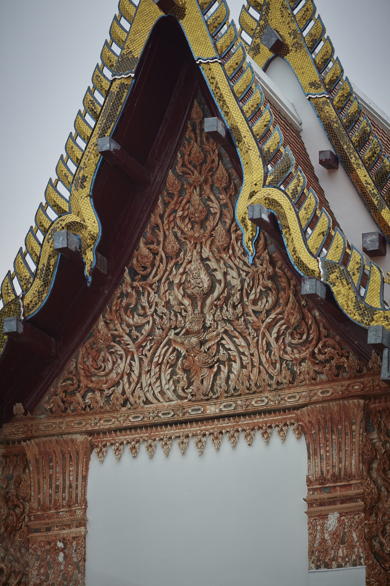 ภาพ: หน้าบันปูนปั้นรูปครุฑยุดลายกนก