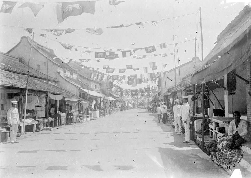 พระบาทสมเด็จพระจุลจอมเกล้าเจ้าอยู่หัว เสด็จพระราชดำเนินไปตามถนนนครใน เมืองสงขลา พ่อค้าและราษฎรตกแต่งร้านและบ้านเรือนด้วยผ้าและธงต่างๆอย่างสวยงาม