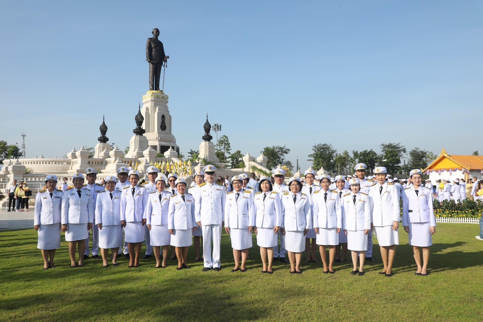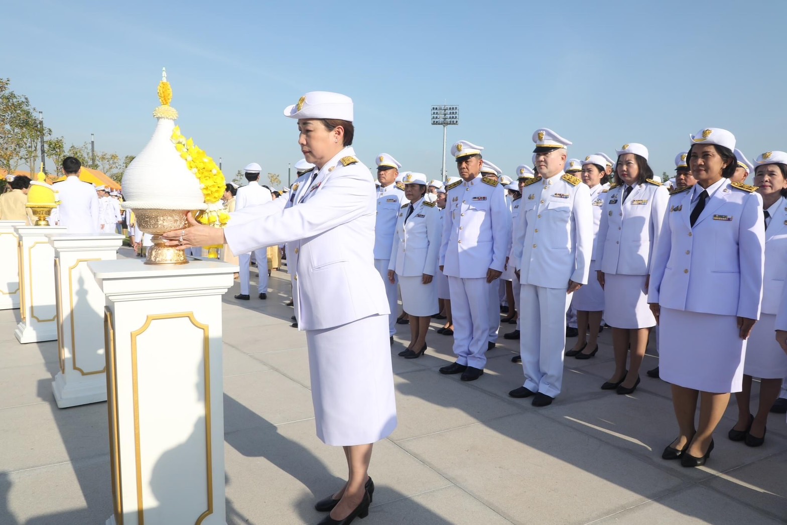 ปลัดกระทรวงวัฒนธรรมนำคณะผู้บริหารกระทรวงวัฒนธรรม วางพานพุ่มถวายราชสักการะ เนื่องในวันคล้ายวันพระบรมราชสมภพ พระบาทสมเด็จพระบรมชนกาธิเบศร มหาภูมิพลอดุลยเดชมหาราช บรมนาถบพิตร วันชาติ และวันพ่อแห่งชาติ ๕ ธันวาคม ๒๕๖๖