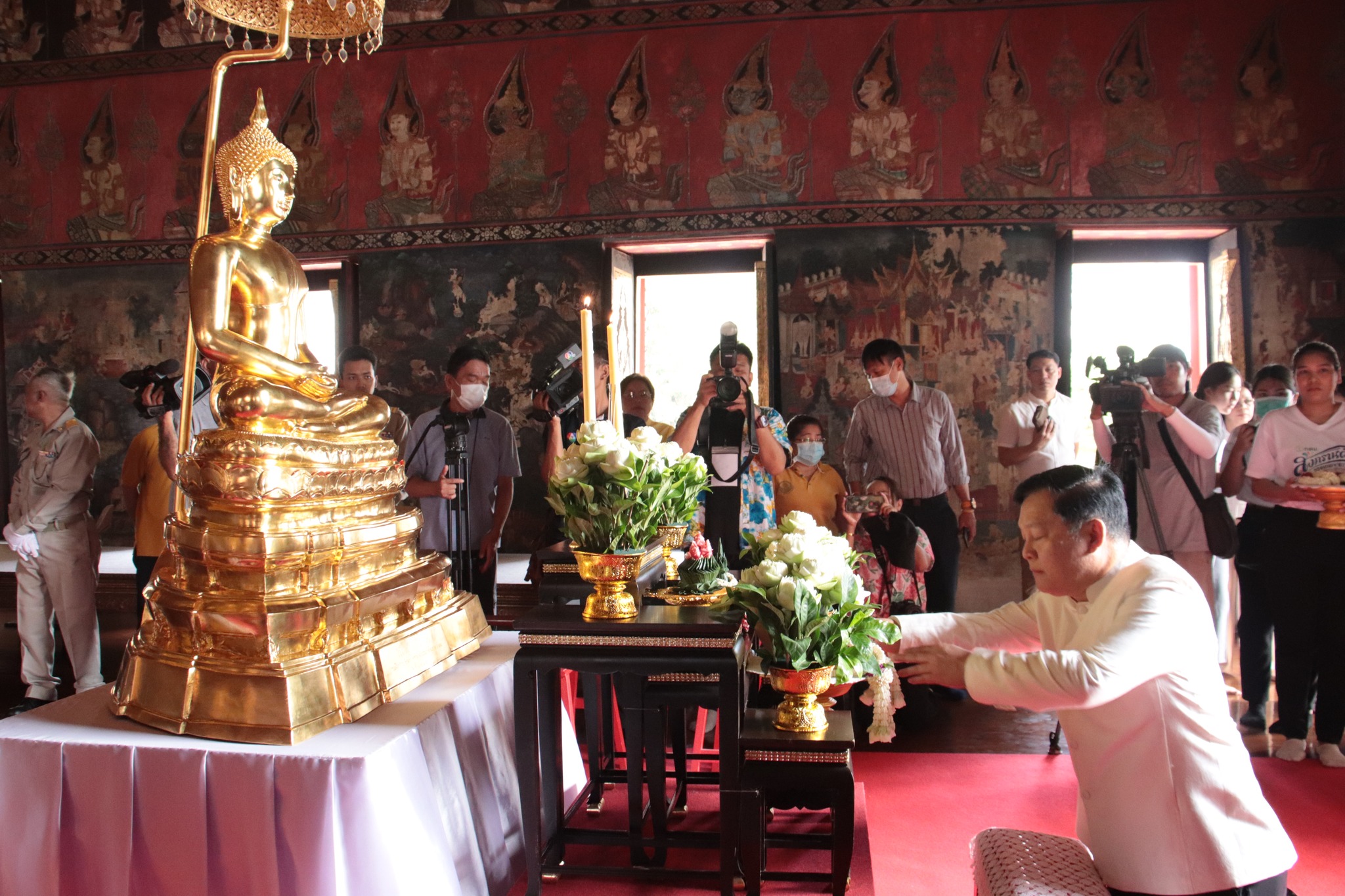 นายชัชชาติ สิทธิพันธุ์ ผู้ว่าราชการกรุงเทพมหานคร พร้อมนายพนมบุตร จันทรโชติ อธิบกรมศิลปากร เป็นประธานพิธีอัญเชิญพระพุทธสิหิงค์ จากพระที่นั่งพุทไธสวรรค์ พิพิธภัณฑสถานแห่งชาติ เขตพระนคร มาประดิษฐานบนมณฑปพิธี ณ ลานคนเมือง ศาลาว่าการกรุงเทพมหานคร (เสาชิงช้า)