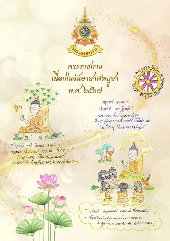 พระบาทสมเด็จพระเจ้าอยู่หัว พระราชทานภาพประกอบคติธรรม เนื่องในโอกาสวันอาสาฬหบูชา พุทธศักราช ๒๕๖๗