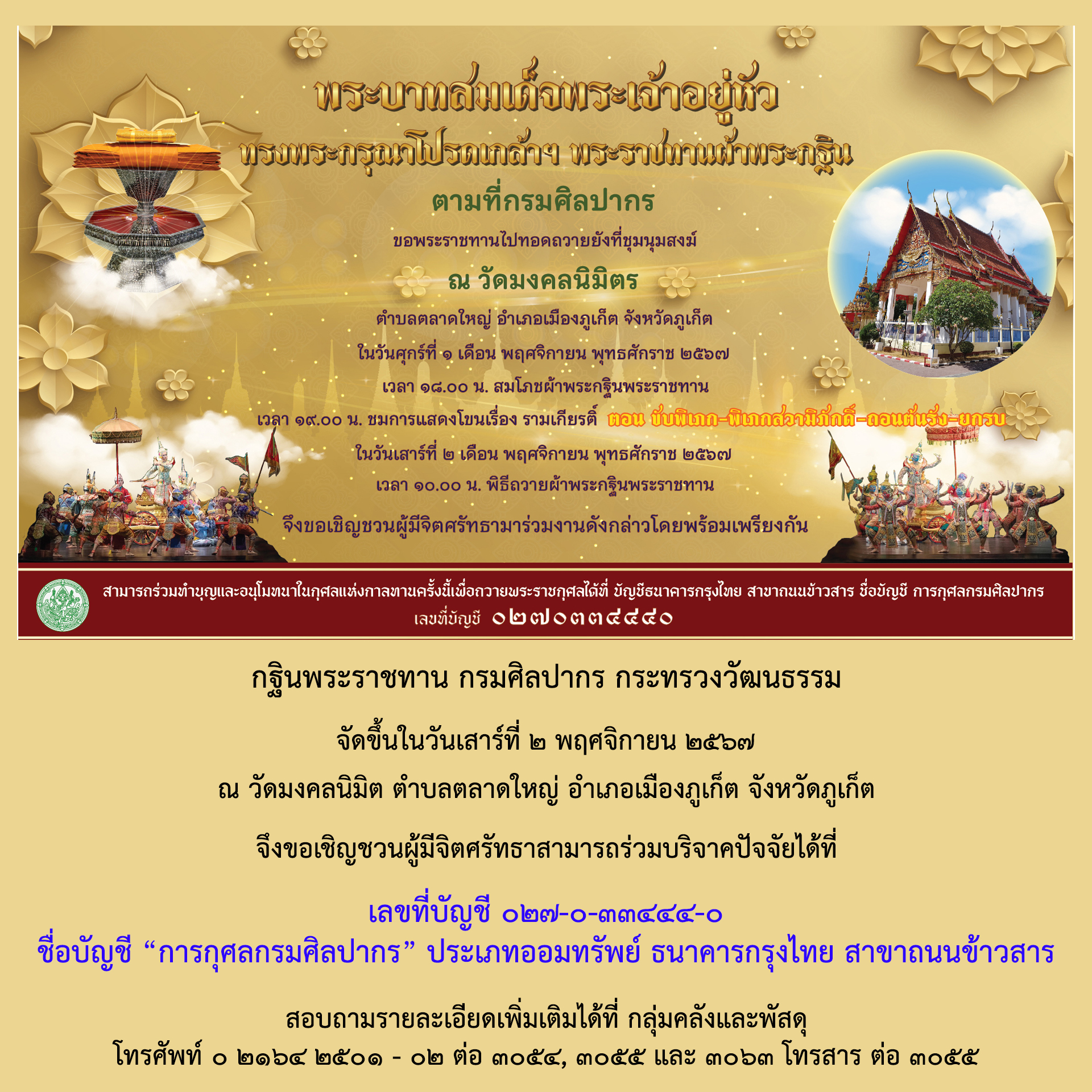 กฐินพระราชทาน กรมศิลปากร ณ วัดมงคลนิมิตร จังหวัดภูเก็ต