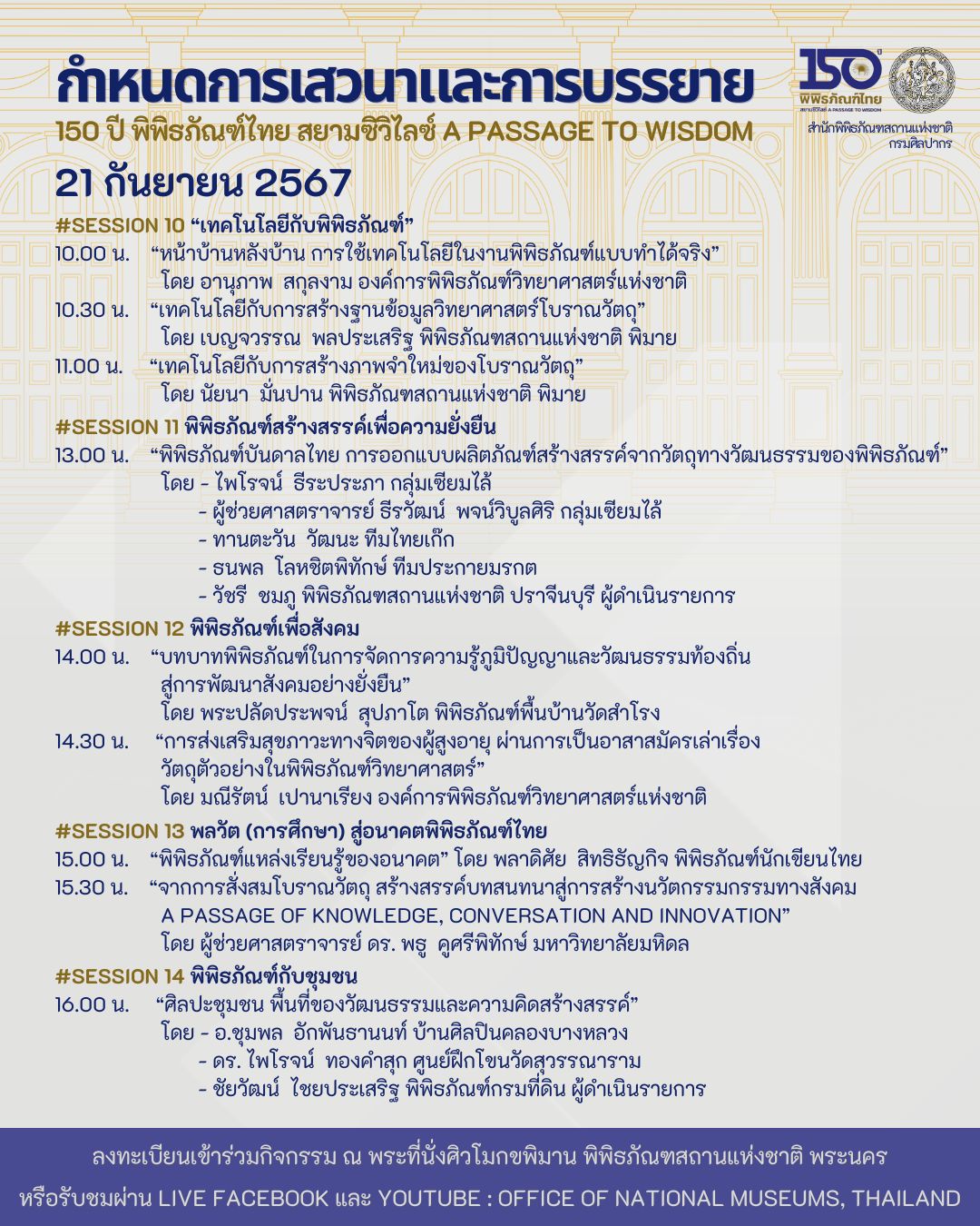 กำหนดการเสวนาและการบรรยาย 150 ปี พิพิธภัณฑ์ไทย