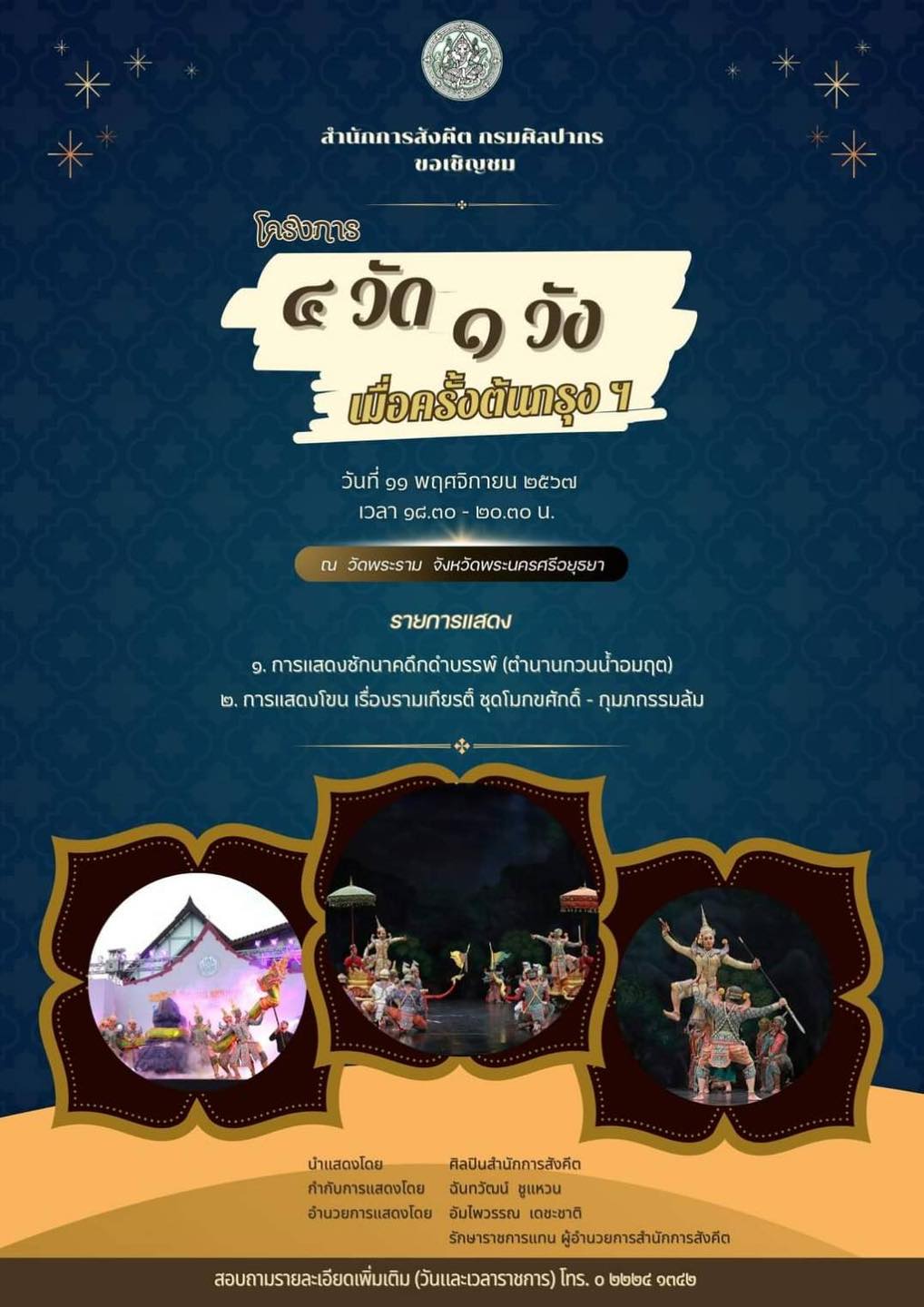 กรมศิลปากร ขอเชิญประชาชนร่วมงาน ๔ วัด ๑ วัง เมื่อครั้งต้นกรุงฯ