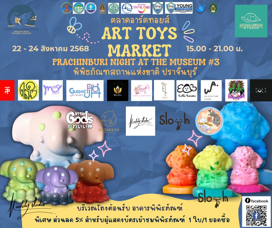ART TOYS MARKET พิพิธภัณฑสถานแห่งชาติ ปราจีนบุรี จับมือกับ Little Turtle Studio นำทัพ ศิลปิน ART TOYS ออกบูธแสดงผลงาน Art Toys งาน Craft และงาน D.I.Y. ณ บริเวณโถงอาคารพิพิธภัณฑ์