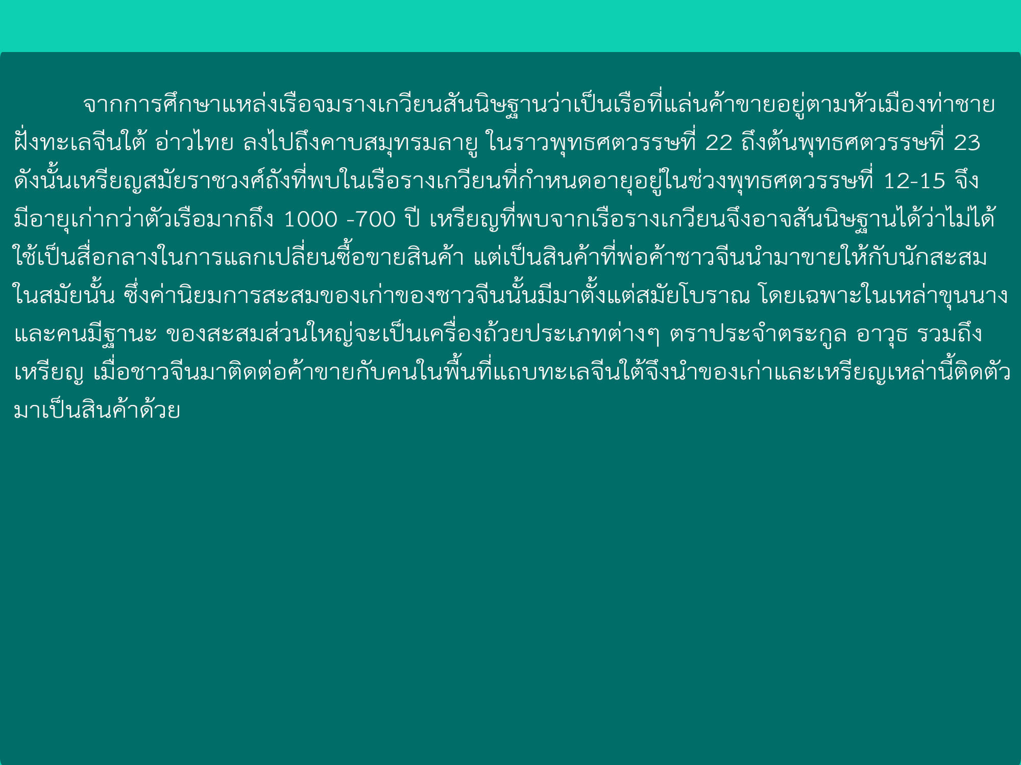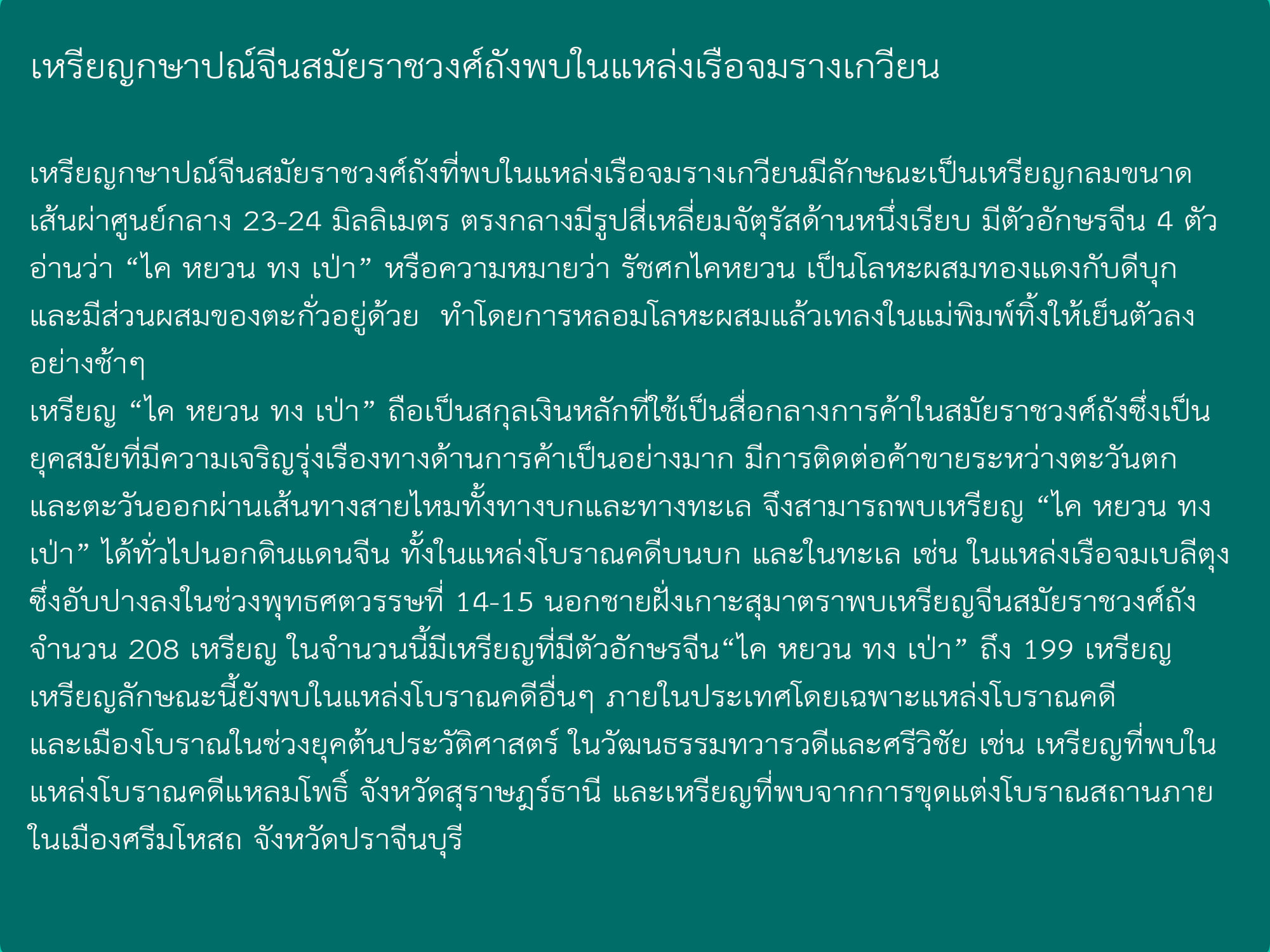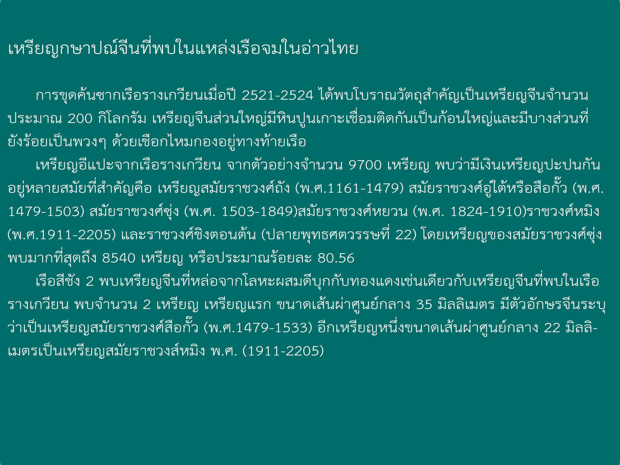 เรื่อง เหรียญจีนที่พบในแหล่งเรือจม
