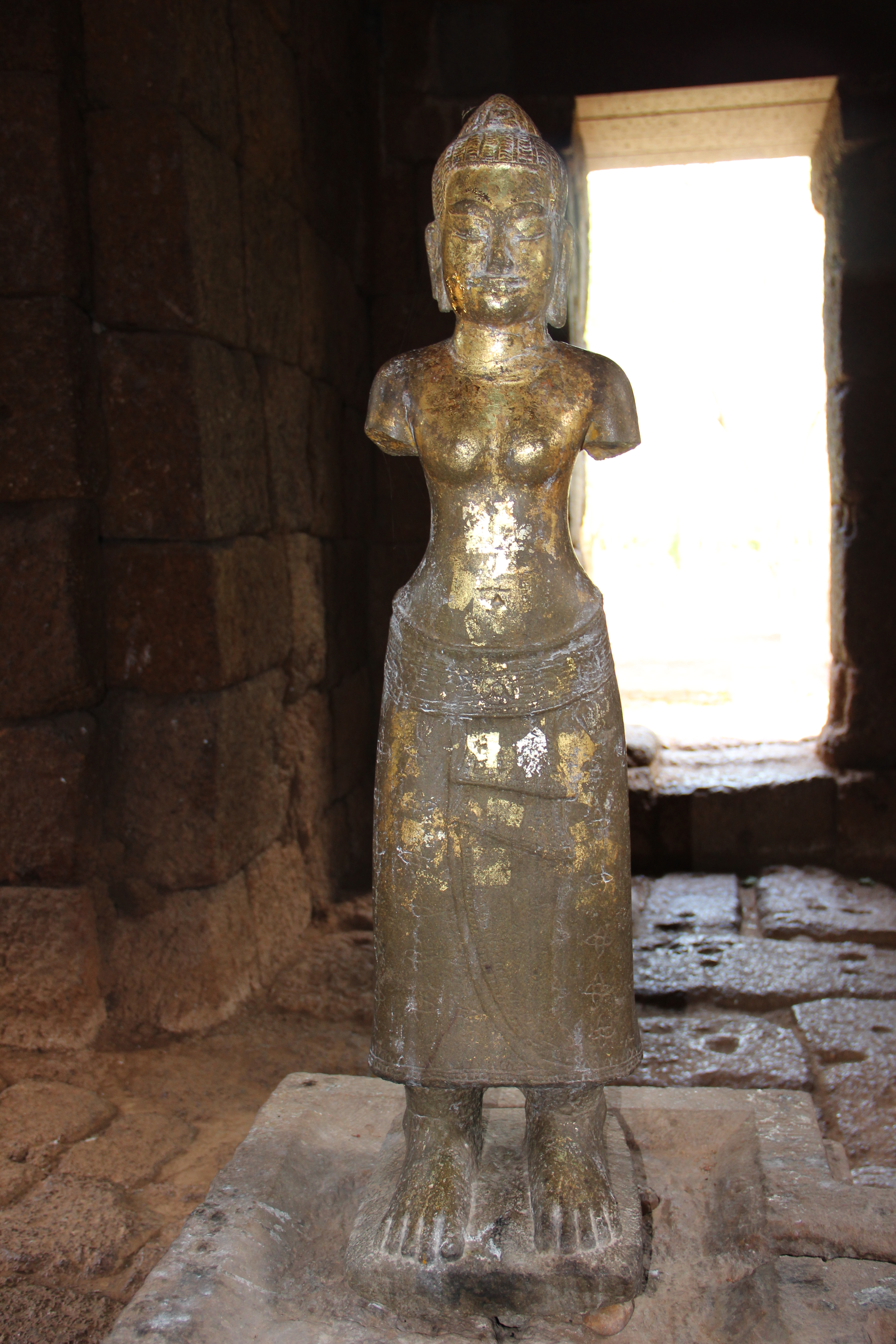 ที่พบในอุทยานประวัติศาสตร์เมืองสิงห์ อำเภอไทรโยค จังหวัดกาญจนบุรี ทำจากหินทราย เป็นรูปเคารพในศาสนาพุทธนิกายมหายาน ลักษณะเป็นรูปสตรีประทับยืนตรง ซึ่งพระกรหักหายทั้ง ๒ ข้าง จากลักษณะพระพักตร์ค่อนข้างเหลี่ยม มีพระเนตรปิด พระขนงค่อนข้างตรง พระนาสิกเป็นส้น พระโอษฐ์อมยิ้ม ผ้านุ่งด้านหน้าทิ้งชายลงมาปล่อยให้ยาว ชายผ้าคล้ายหางปลาทบไปมามีเข็มขัดสลักลายดอกไม้คาด เป็นลักษณะของประติมากรรมในศิลปะเขมรแบบบายน ในช่วงพุทธศตวรรษที่ ๑๘ ปัจจุบัน นางปรัชญาปารมิตาองค์จริงได้จัดแสดงอยู่ใน พิพิธภัณฑสถานแห่งชาติ บ้านเก่า
