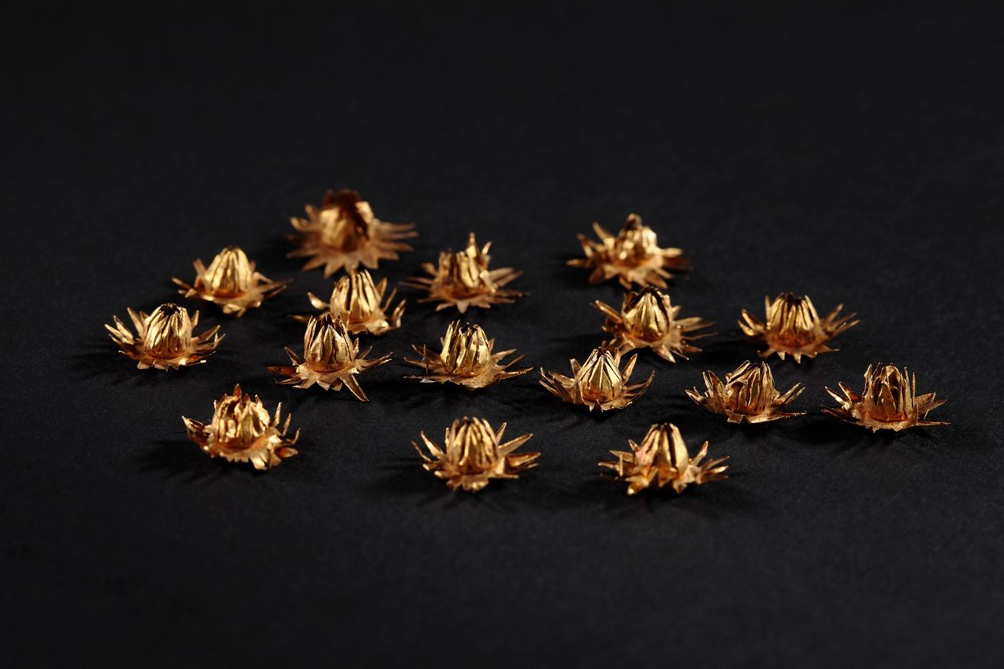 ทองคำ สูงเฉลี่ย ๐.๖ เซนติเมตร เส้นผ่าศูนย์กลางเฉลี่ย ๑.๕ เซนติเมตร