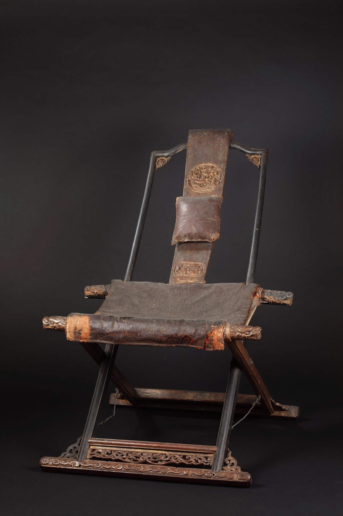 พระเก้าอี้พับ ไม้พนักเก้าอี้จำหลักรูปมังกรและสิงโต