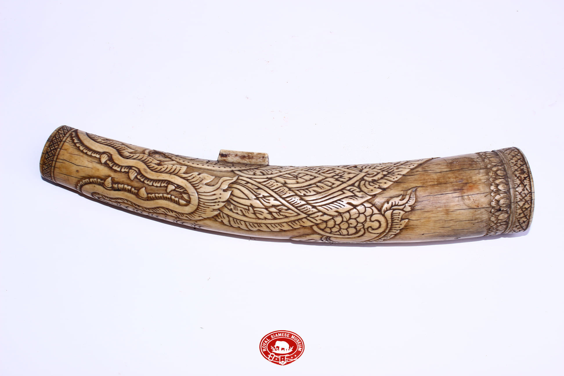 เขนง (เครื่องเป่าบอกอาณัติสัญญาณในการศึก หรือภาชนะใส่ดินปืน) งาช้างจำหลักลายเหรา ศิลปะรัตนโกสินทร์ พุทธศตวรรษที่ ๒๕ จัดแสดงอยู่ที่ พระที่นั่งบูรพาพิมุข ในหมู่พระวิมาน พิพิธภัณฑสถานแห่งชาติ พระนคร ลักษณะเป็นงาช้างจำหลักรูปเหราปรากฏส่วนหัว ลำตัวและเท้าของเหรา