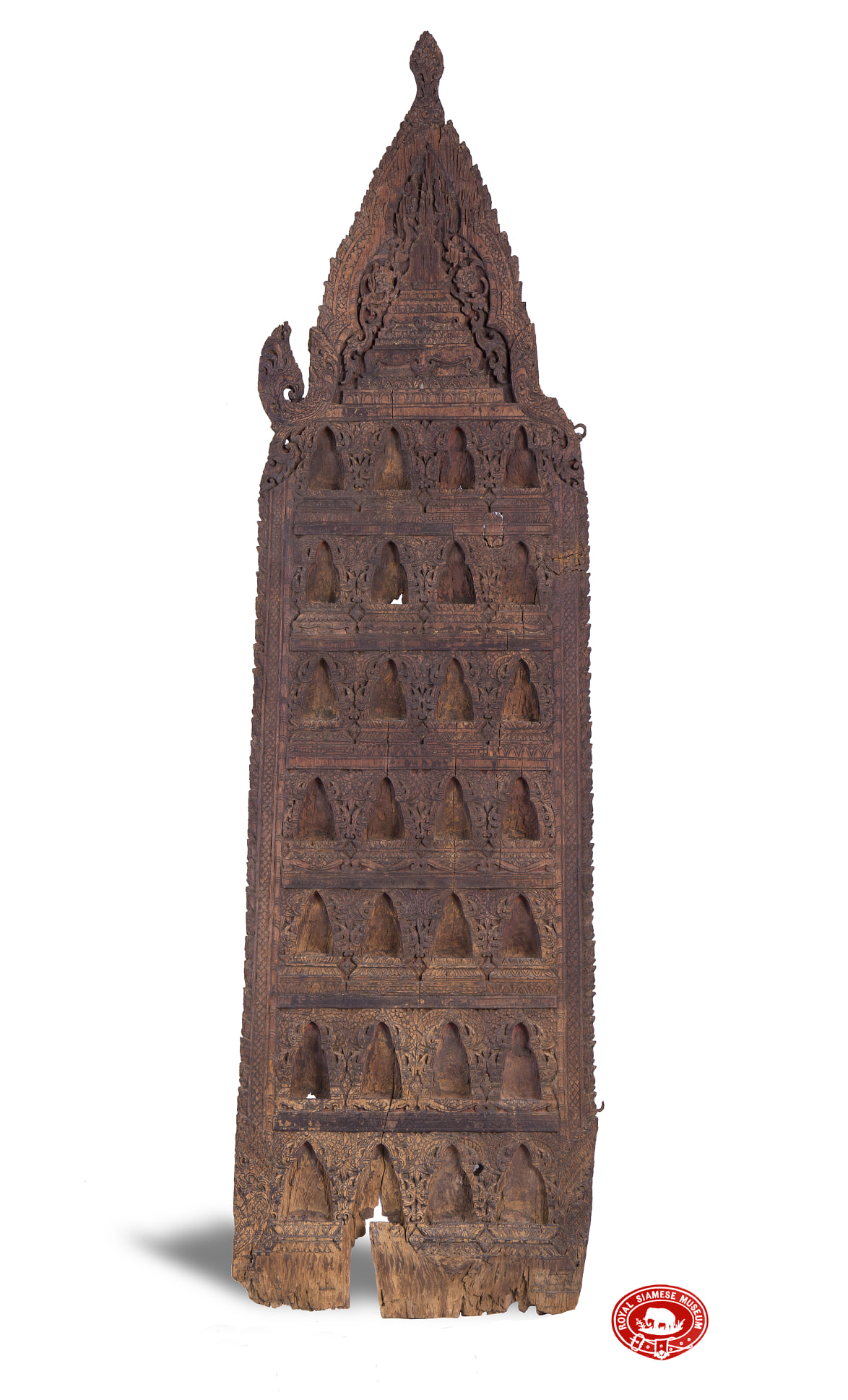 แผงพระพิมพ์ไม้ จำหลักลาย ศิลปะอยุธยา พุทธศตวรรษที่ ๒๑-๒๒ จัดแสดงอยู่ที่ มุขเด็จในหมู่พระวิมาน พิพิธภัณฑสถานแห่งชาติ พระนคร เป็นงานจำหลักไม้รูปเหราคายนาคที่ส่วนปลายรวยระกาของกรอบหน้าบัน