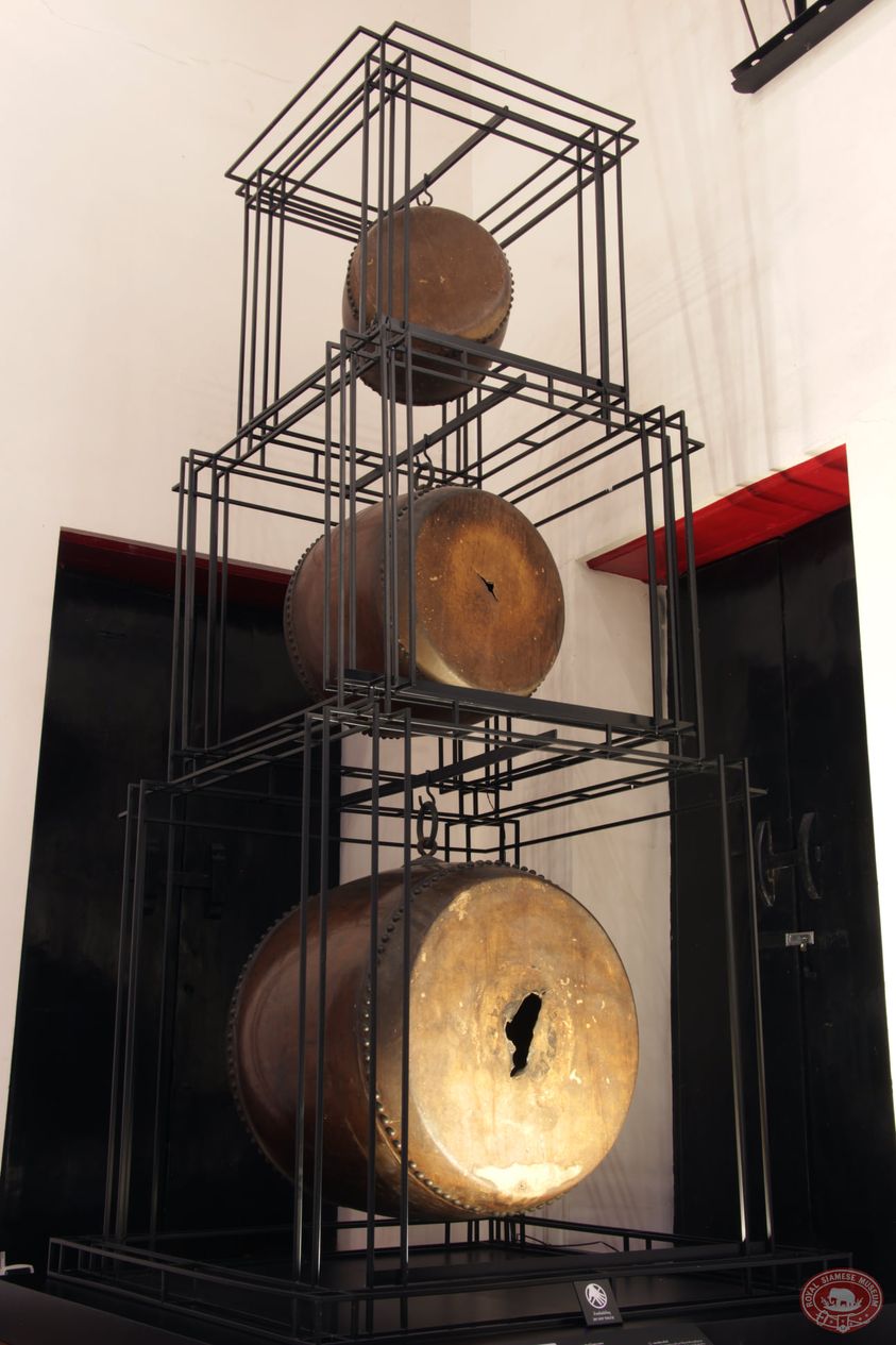 เมื่อมีการใช้นาฬิกาแพร่หลายพ้นสมัยการตีกลองให้สัญญาณ จึงย้ายกลองทั้งสามใบนี้ไปยังหอนาฬิกาศาลสถิตยุติธรรม และหอนาฬิกาศาลาว่าการกระทรวงกลาโหมตามลำดับ ต่อมาในสมัยรัชกาลที่ ๖ พ.ศ. ๒๔๕๔ โปรดเกล้าฯ ให้ย้ายมาเก็บรักษาในพิพิธภัณฑสถาน