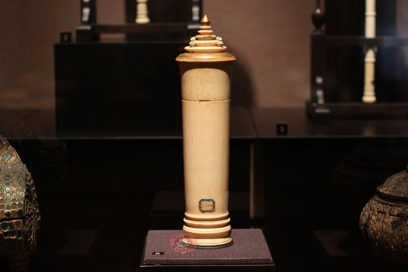 กล่องพระสุพรรณบัฏทรงโกศ ทำจากงาช้าง ลักษณะตัวกล่องเป็นงาช้างกลึงทรงกระบอก ด้านล่างตกแต่งด้วยลวดบัวลูกแก้ว ส่วนฝากลึงเป็นบัวฝาละมี และมีลวดบัวในผังกลมซ้อนลดหลั่นกันไป ประดับยอดบัว ๕ ยอด มีร่องรอยการปิดทอง กล่องพระสุพรรณบัฏแต่เดิมจัดอยู่ ณ พระที่นั่งพรหมเมศธาดา ตั้งแต่เมื่อครั้งเปิดพิพิธภัณฑสถานแห่งชาติสำหรับพระนคร เมื่อ พ.ศ. ๒๔๖๙ ดังปรากฏคำอธิบายโบราณวัตถุในพระที่นั่งพรหมเมศธาดาความตอนหนึ่งกล่าวว่า