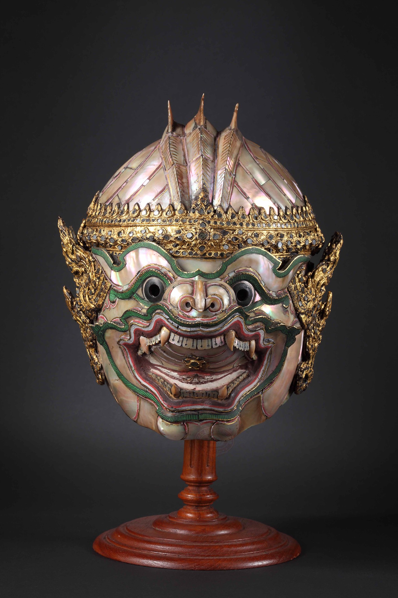 ในสมัยพระบาทสมเด็จพระจุลจอมเกล้าเจ้าอยู่หัวรัชกาลที่ ๕ เคยจัดแสดงในมิวเซียมหลวงหรือหอคองคอเดีย (ปัจจุบันคือ ศาลาสหทัยสมาคม) ในพระบรมมหาราชวัง ดังปรากฏในเรื่อง ความเจริญของกรุงสยาม (ตีพิมพ์ในดรุโณวาท เมื่อวันอังคาร เดือนกันยายน แรม ๑๑ ค่ำ พ.ศ. ๒๔๑๗) กล่าวถึงสิ่งของต่าง ๆ ที่จัดแสดงอยู่ในหอคองคอเดีย ความตอนหนึ่งกล่าวว่า “...ต่อไปโต๊ะตั้งศีศะโขนประดับมุกแลปิดทอง ดูผุดผ่องเปนของประหลาด...” กระทั่งเมื่อย้ายพิพิธภัณฑ์มายังพระราชวังบวรสถานมงคล และต่อมาได้เปิดเป็นพิพิธภัณฑสถานสำหรับพระนคร ศีรษะโขนหน้าหนุมานประดับมุกชิ้นนี้ยังคงจัดแสดงมาตลอด ในบางโอกาสได้เคยถูกนำไปจัดนิทรรศการพิเศษในต่างประเทศอีกด้วย