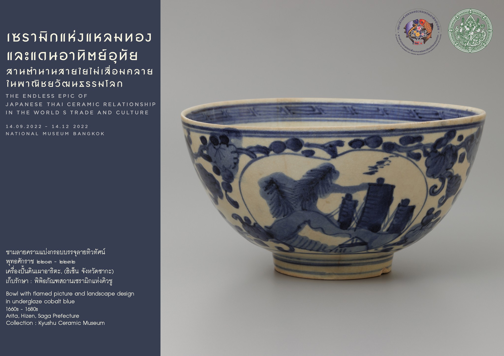 ชามลายครามแบ่งกรอบบรรจุลายทิวทัศน์