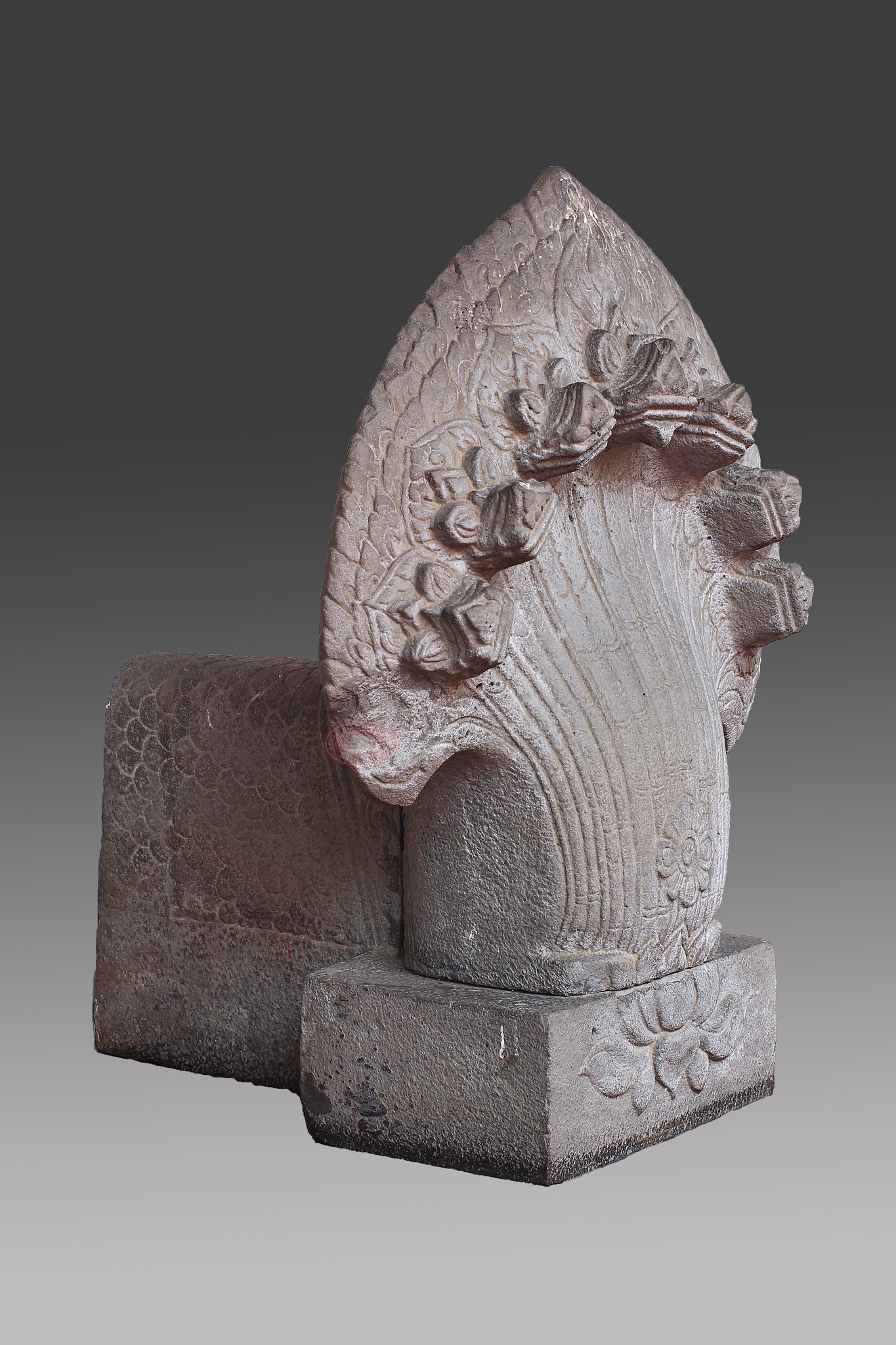 ประติมากรรมนาค ๗ เศียร สลักจากศิลาแบ่งออกเป็นสองส่วนตั้งซ้อนกัน ท่อนบนสลักรูปนาค ๗ เศียร มองตรงมาข้างหน้า จมูกนาคยื่นออกมาเป็นสามเหลี่ยม เศียรนาคตรงกลางแสดงเคราใต้คาง พังพานนาครูปทรงคล้ายใบโพธิ์ ขอบพังพานสลักลายกระหนกซ้อนกันสองชั้น คอนาคด้านหน้าสลักรูปดอกไม้แปดกลีบประดับอยู่กึ่งกลาง ส่วนล่างสลักรูปดอกบัวบาน หินท่อนล่างสลักหินเป็นลำตัวนาคที่มีเกล็ดรูปทรงโค้งมน บริเวณส่วนต้นของลำตัวที่ติดกับพังพานสลักลายเกลียวกระหนก* ประติมากรรมนาค ๗ เศียร นี้มีสองชิ้นตั้งคู่กัน