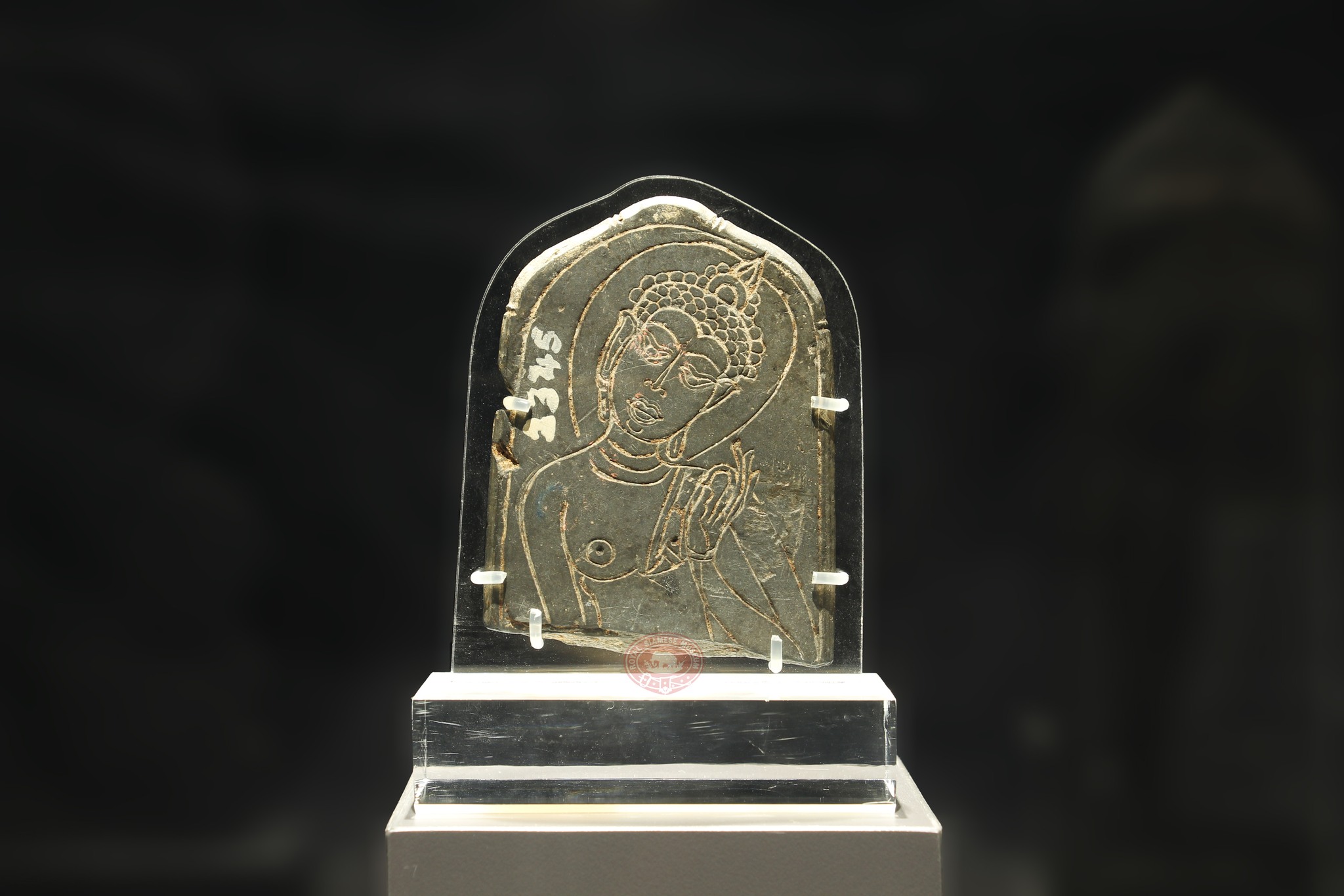 แผ่นศิลาจำหลักรูปพระพุทธเจ้าและจารึก